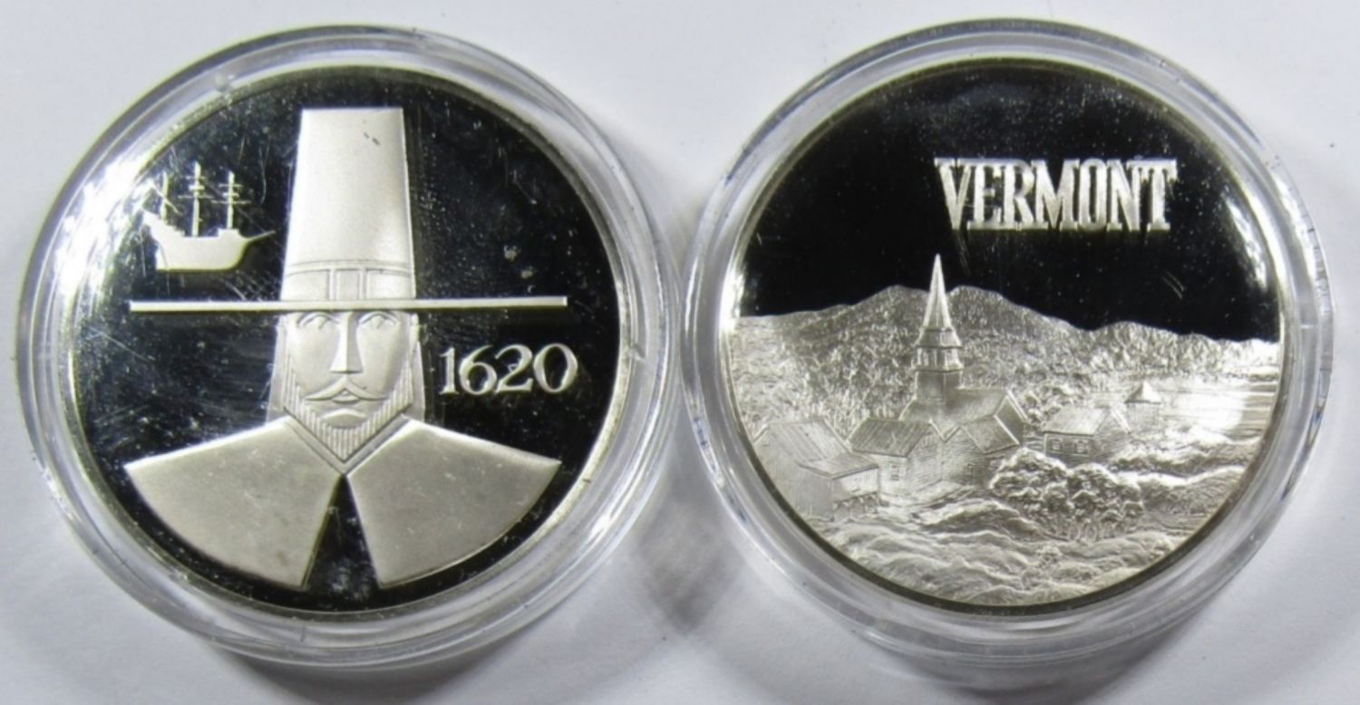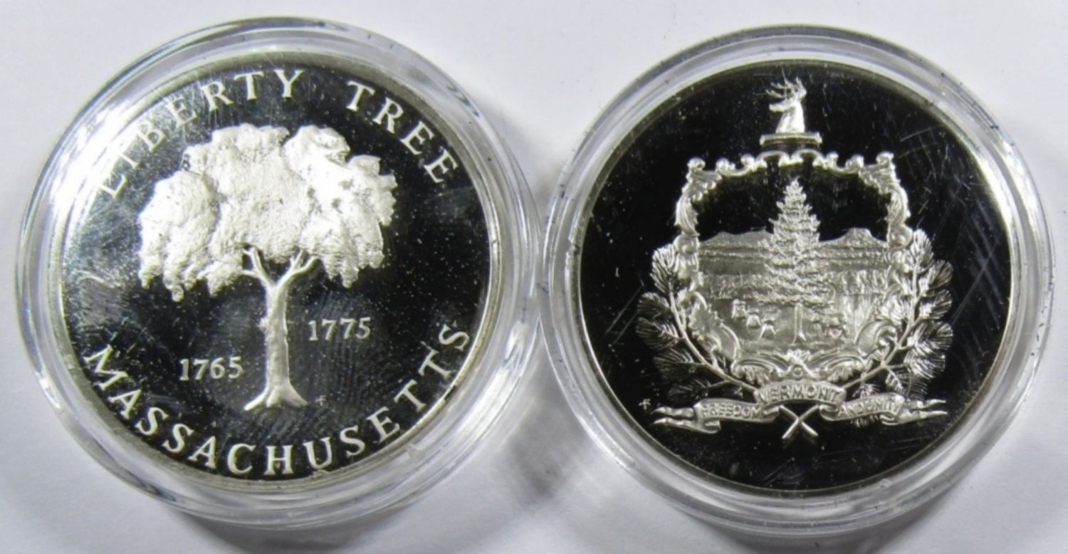 2 ozt .925 SILVER TOTAL: (2) 21 DWT STERLING PROOF COMMEMORATIVE ROUNDS.