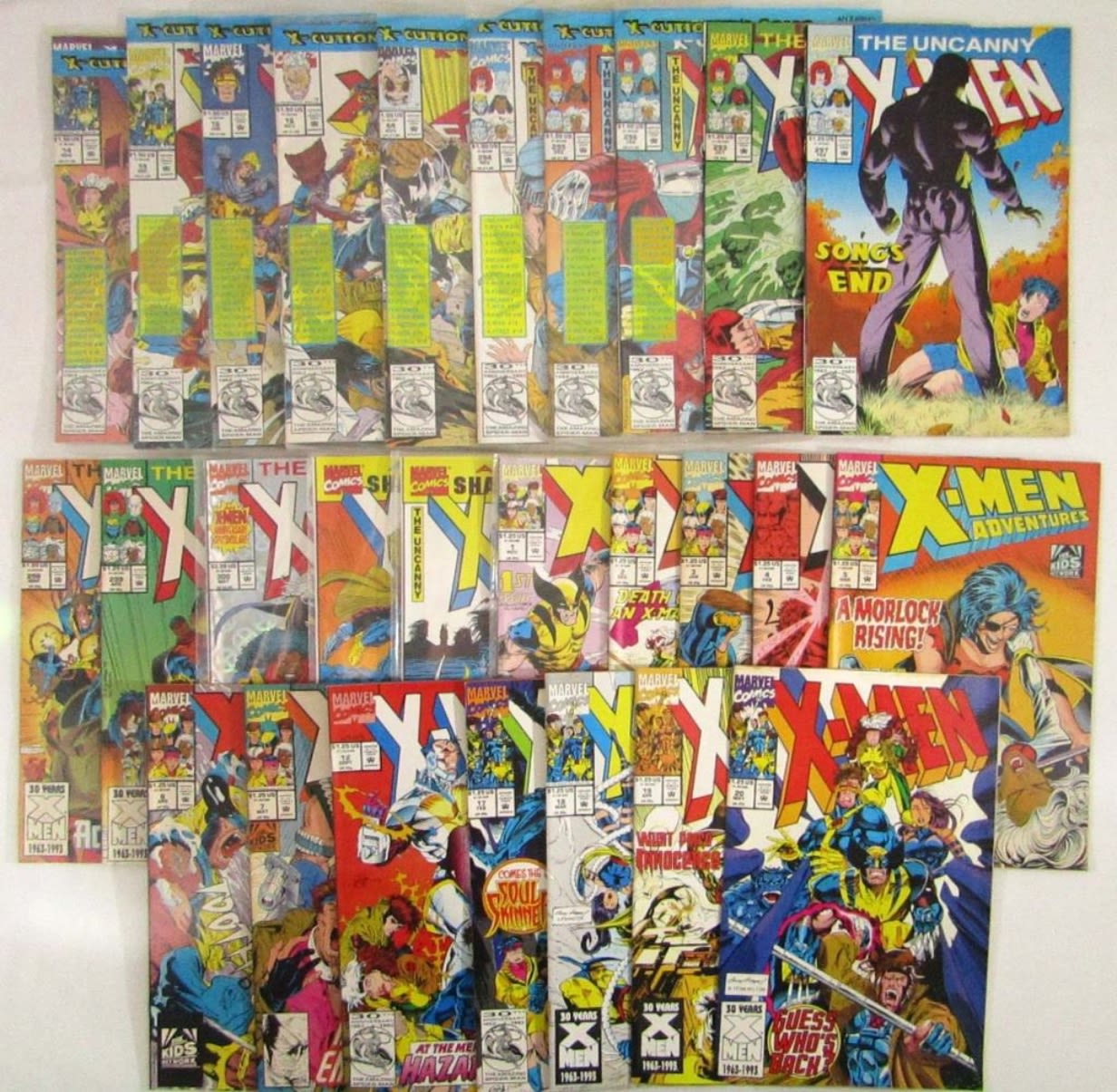 X-MEN ADVENTURES #1-#7; ANNUAL SHATTERSHOT #1 & #2; THE UNCANNY X-MEN #293, #297-#300 foil issue ; X-CUTIONER’S SONG (8) DIFFERENT in ORIGINAL SEALED BAGS; X-MEN #12, #17-#20