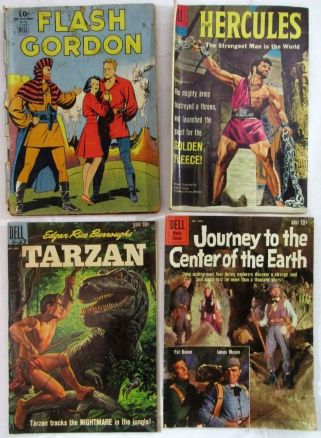 FLASH GORDON, (3) DELL 10c 1950s/60s JOURNEY TO THE CENTER OF THE EARTH, TARZAN & HERCULES