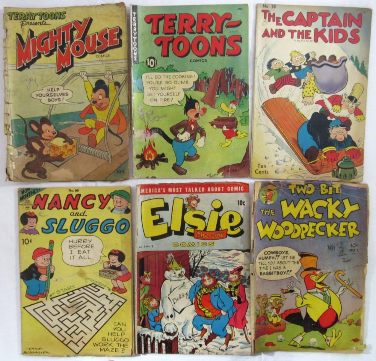 TERRY-TOONS, THE CAPTAIN AND THE KIDS, NANCY AND SLUGGO, ELSIE, WACKY WODPECKER – SHOWS WEAR / BRITTLE – VINTAGE COMIC LOT