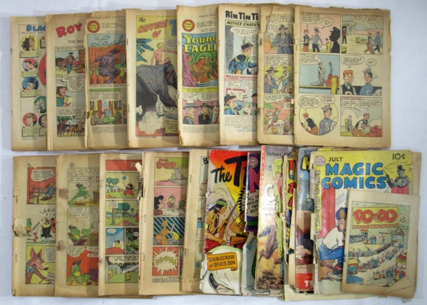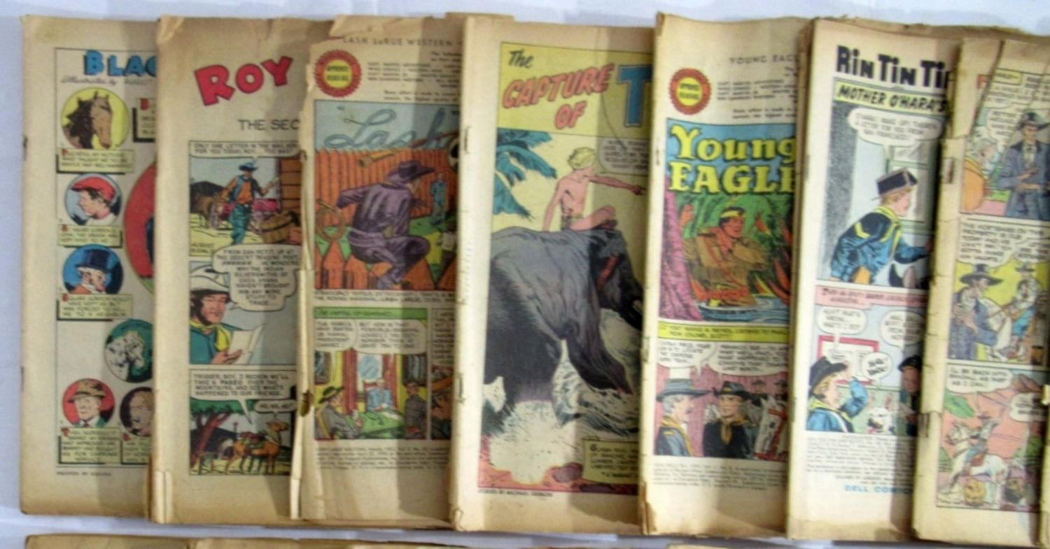 APPROX 16 plus COVERS & PAGES – BLACK BEAUTY, ROY ROGERS, TEELA, YOUNG EAGLE, SENSATION COMICS, FUNNY STUFF, NANCY & MORE – UNSEARCHED – BRITTLE LOT