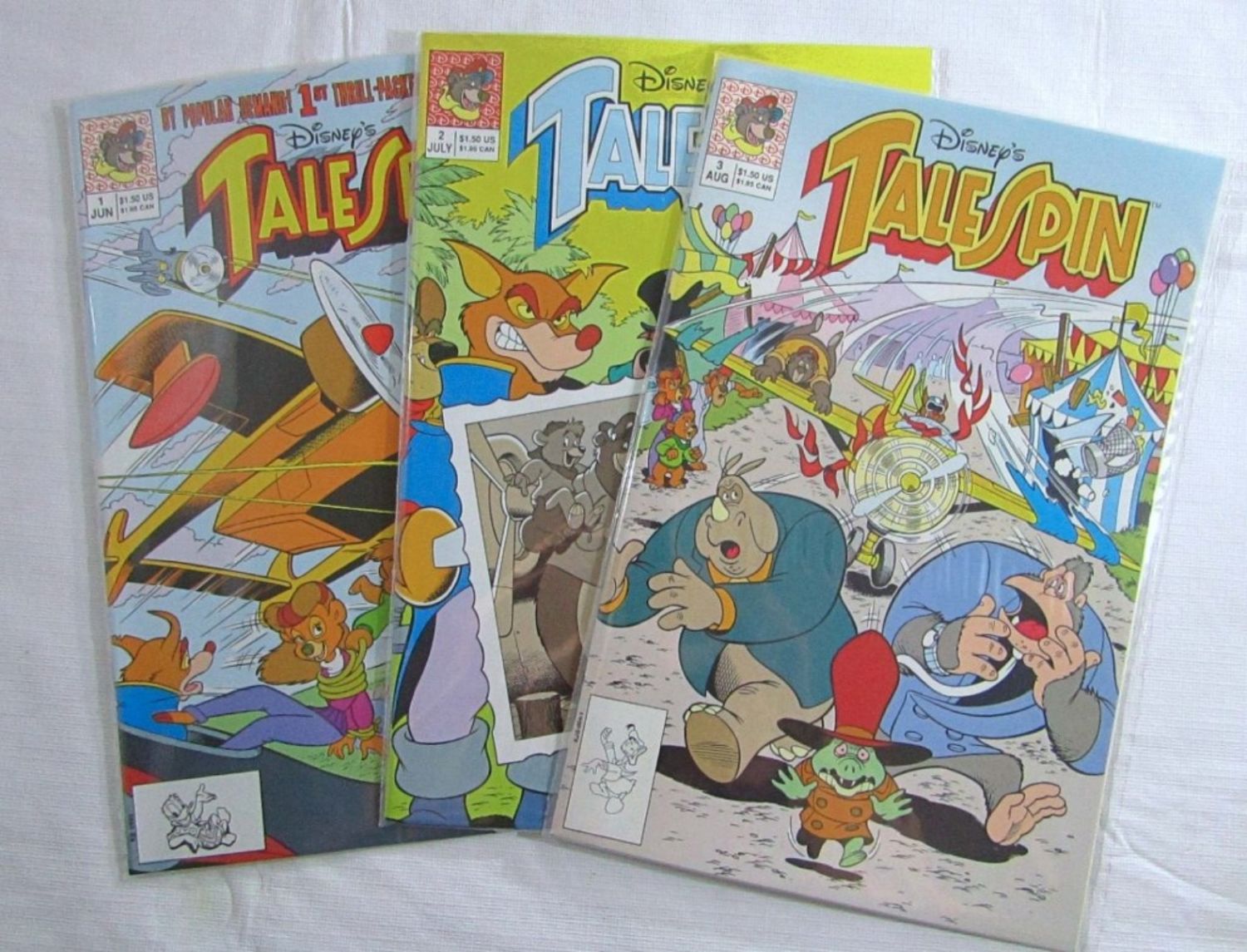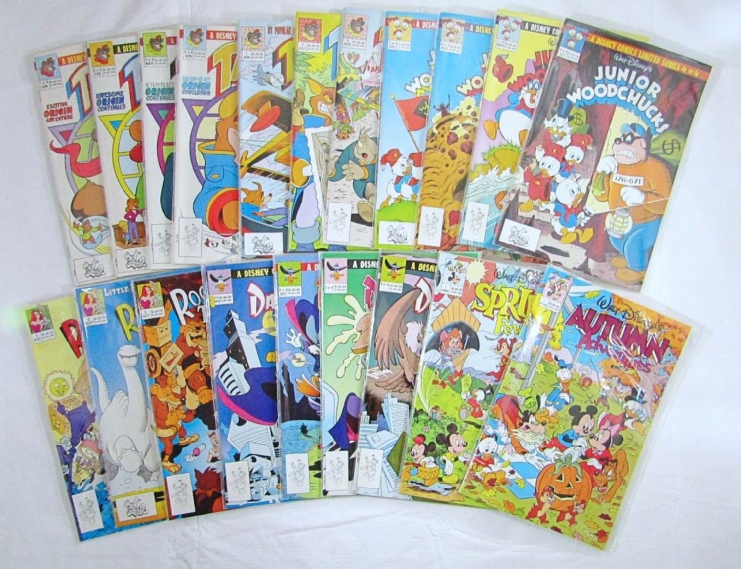 TALE SPIN #1 thru #4, TALE SPIN #1-#3, JUNIOR WOODCHUCKS #1 thru #4, ROGER RABBITT’s #1-#3, DARKWING DUCK #1 thru #4, SPRING FEVER & AUTUMN ADVENTURES