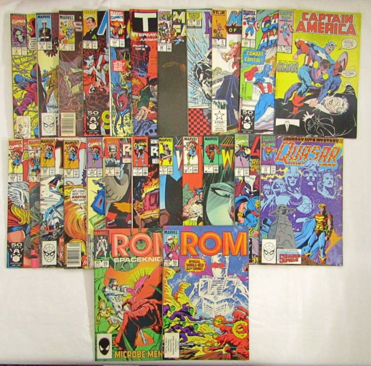 (5) THOR, (2) ROBOCOP, (3) WOLVERINE, (2) QUASAR, (2) ROM, (2) CAPTAIN AMERICA, (9) MIX