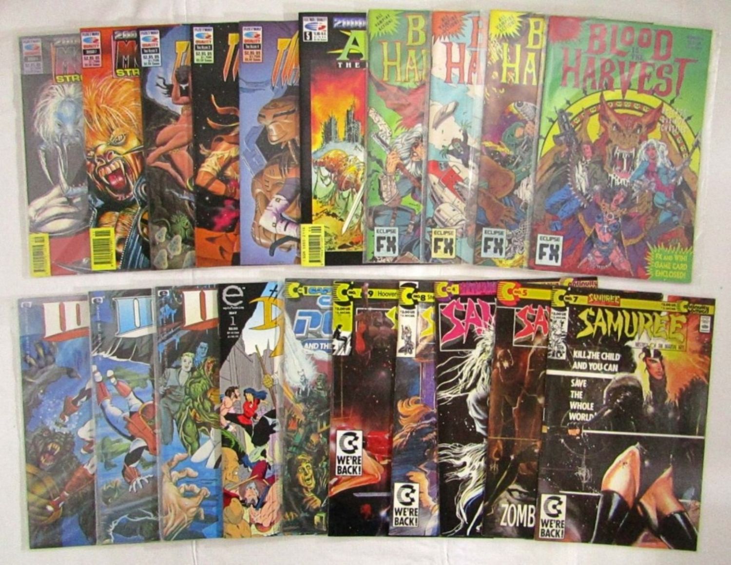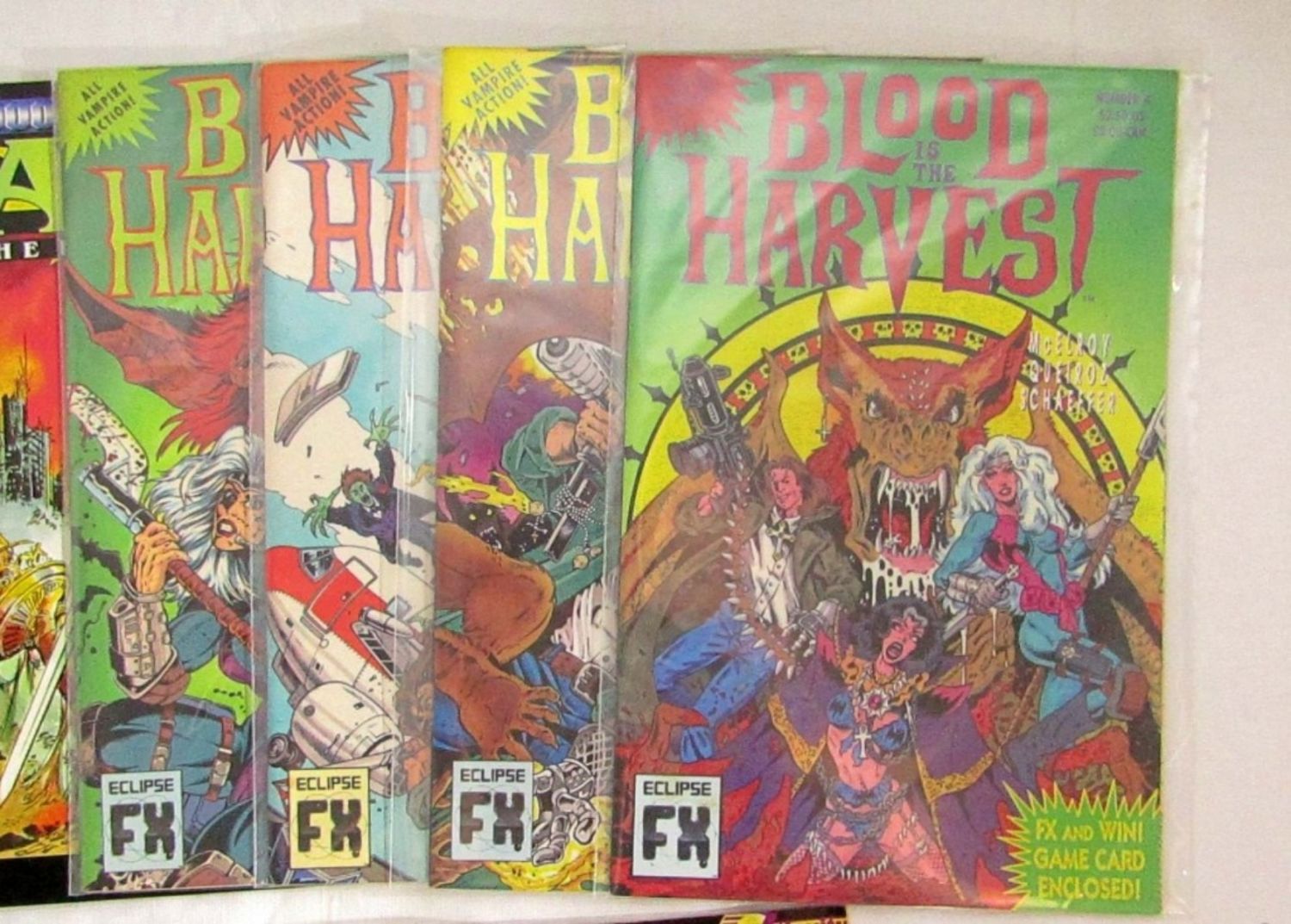 ECLIPSE BLOOD is the HARVEST #1 thru #4, FLEETWAY TIME KILLERS & MONSTERS STRONTIUM DOGS #1 & #2, CONTINUITY COMICS – MANY #1 ISSUES IN THIS LOT