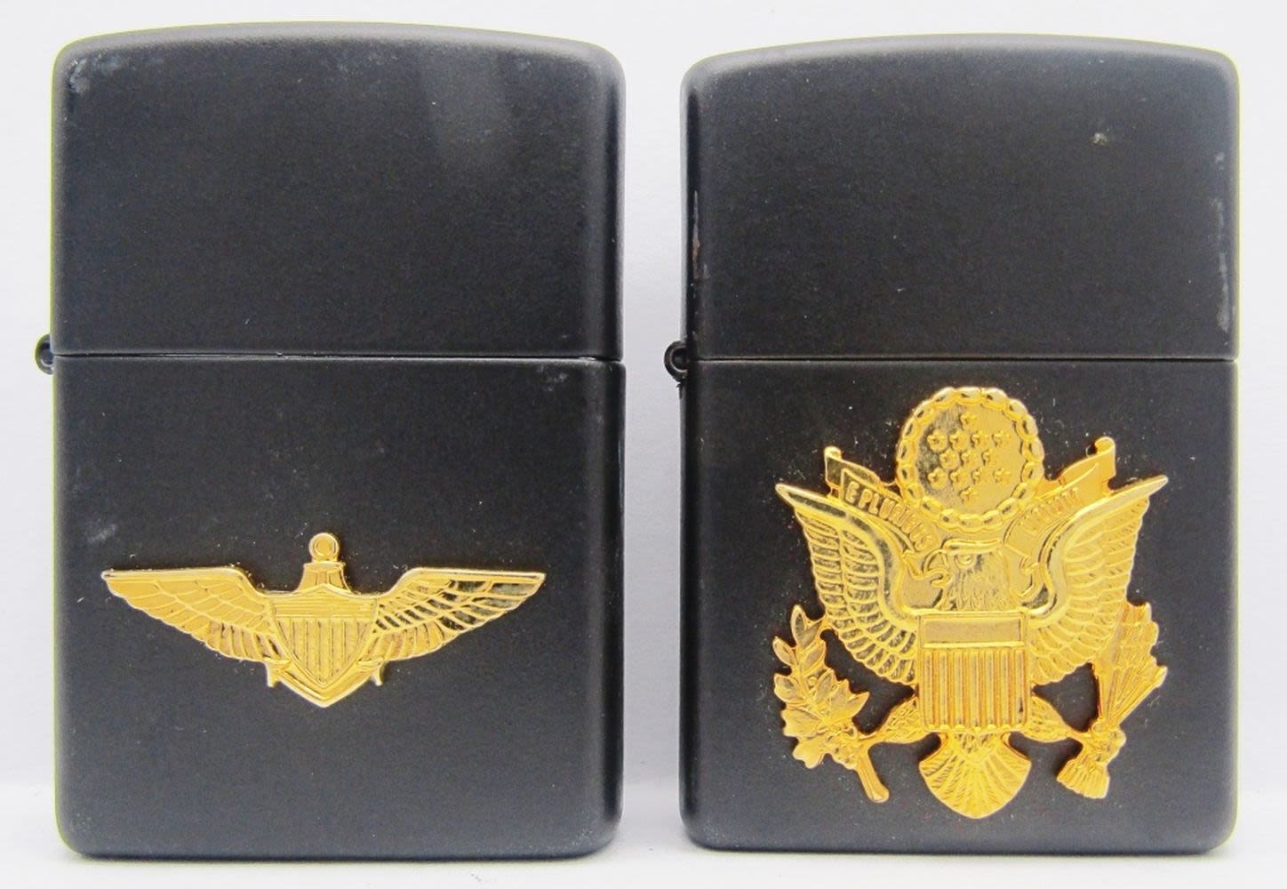 Aviator Officer Pilot Emblem In Black Matte & U.S. Eagle Army Emblem in Black Matte; Both UNFIRED Zippo Lighters!