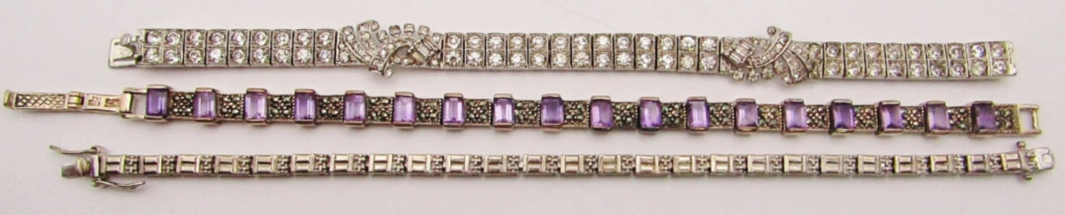 MARCASITE / PURPLE STONE 7″; VINTAGE CLEAR STONE 7″; SILVER 925 7 1/2″ ( 35 DWT)