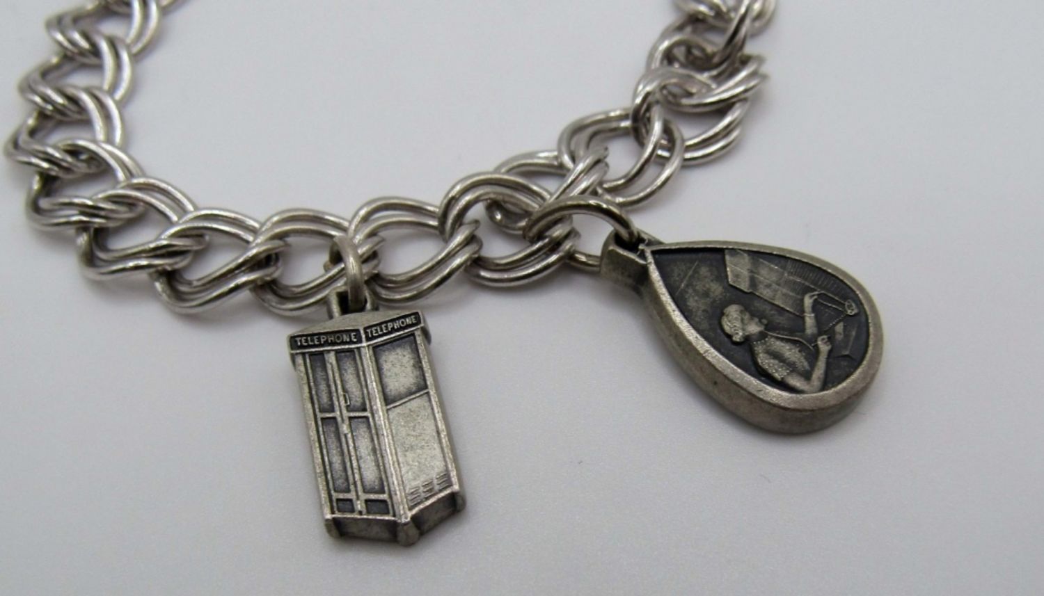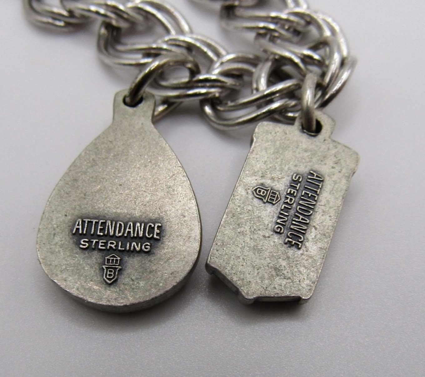 7in bracelet marked sterling, Two charms both say sterling made by ATTENDANCE ,14 DWT