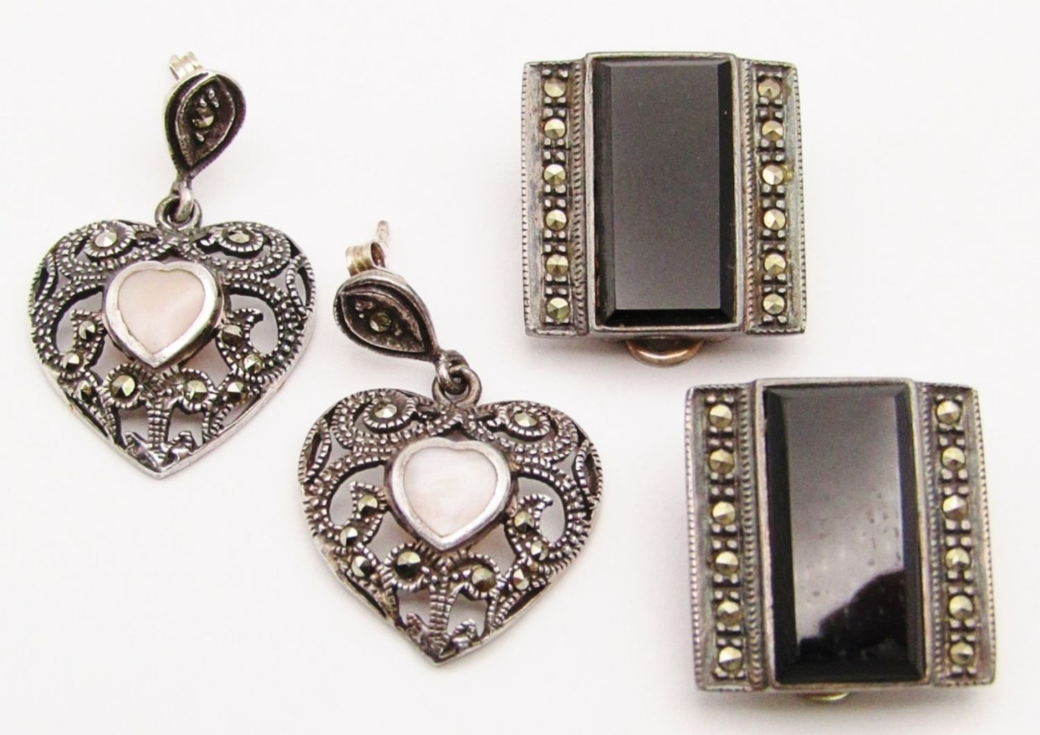 BLACK ONYX CLIP ON & HEART PIERCED EARRINGS