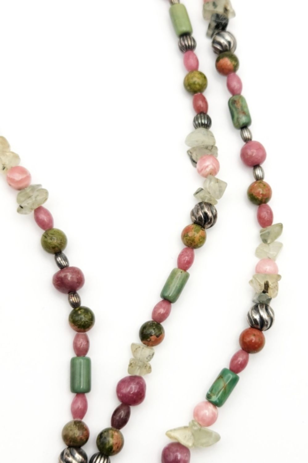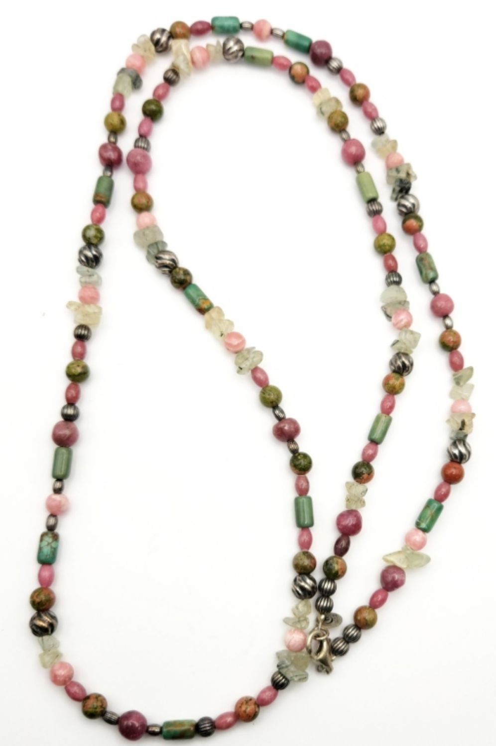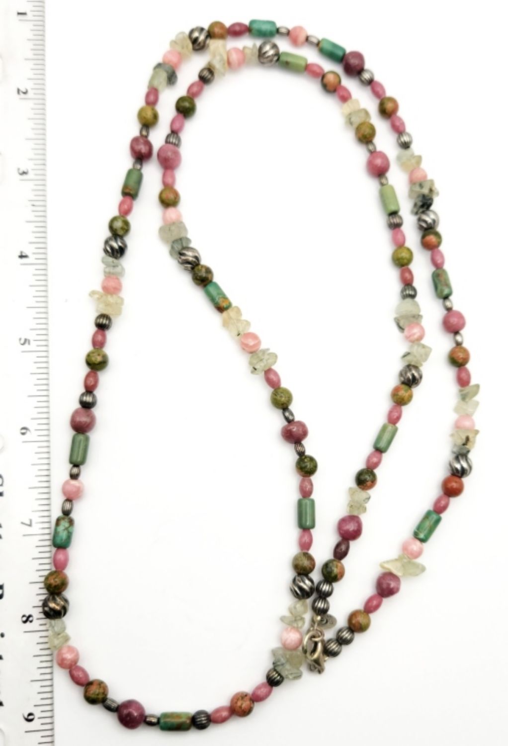 BEADED NECKLACE-AGATE-PINK AND GREEN MARBE BEAD ACCENTS-MEASURES 36 INCHES-TOTAL 33 DWT