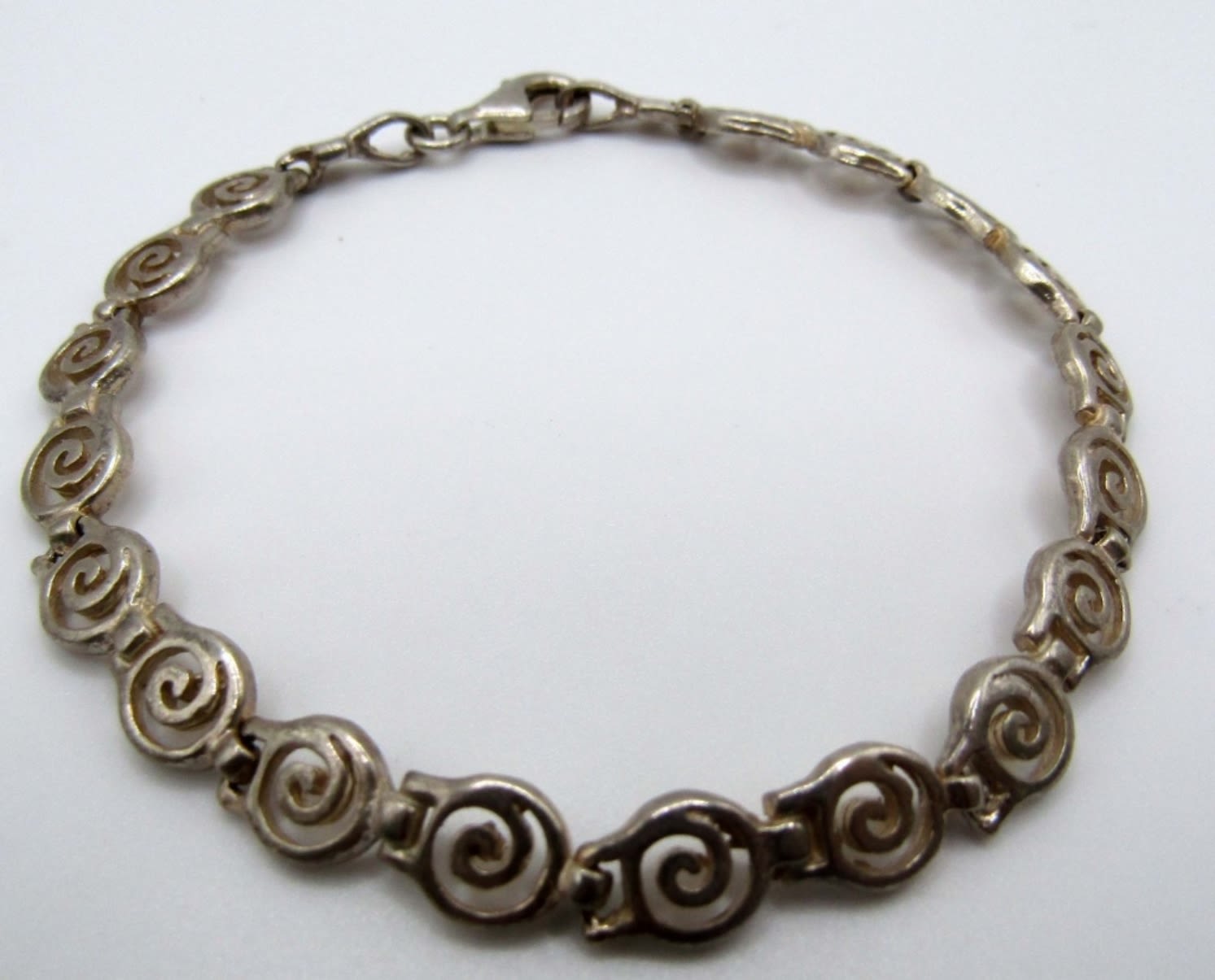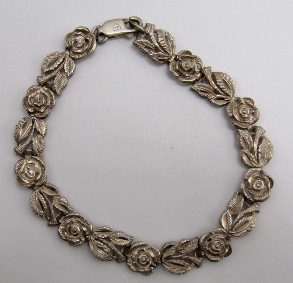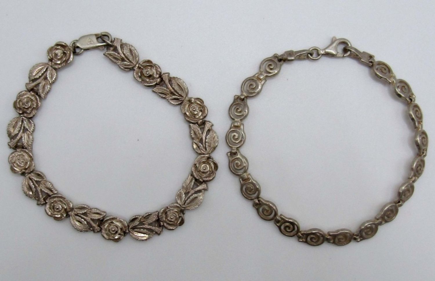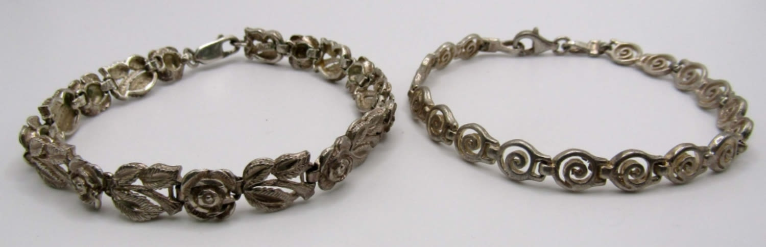 One flower and leaf Bracelet, marked with 925 and heart stamped with SA in the middle, made in Salerno, Itlay, Second bracelet marked with 925 has a spiral design, 14 DWT