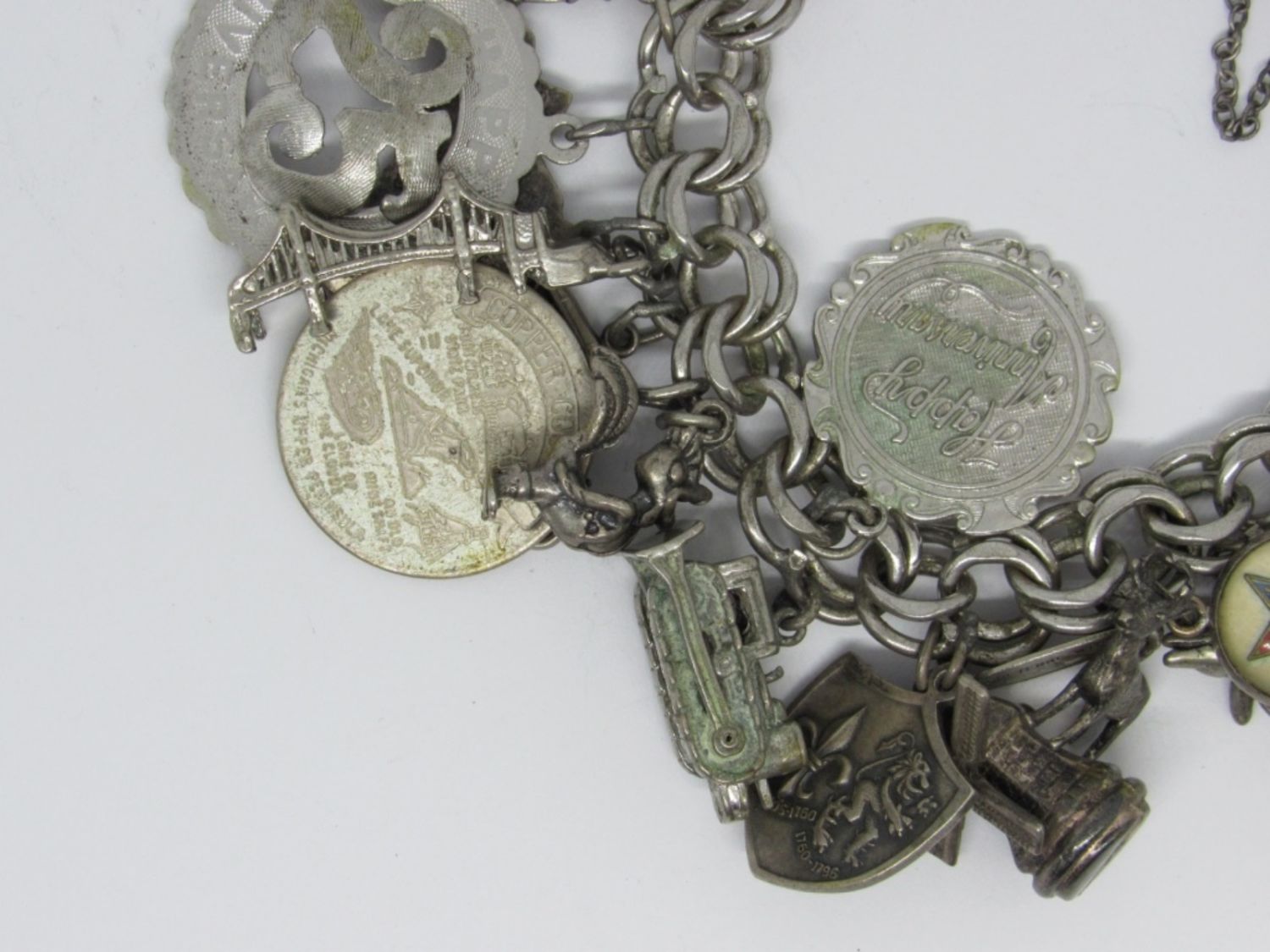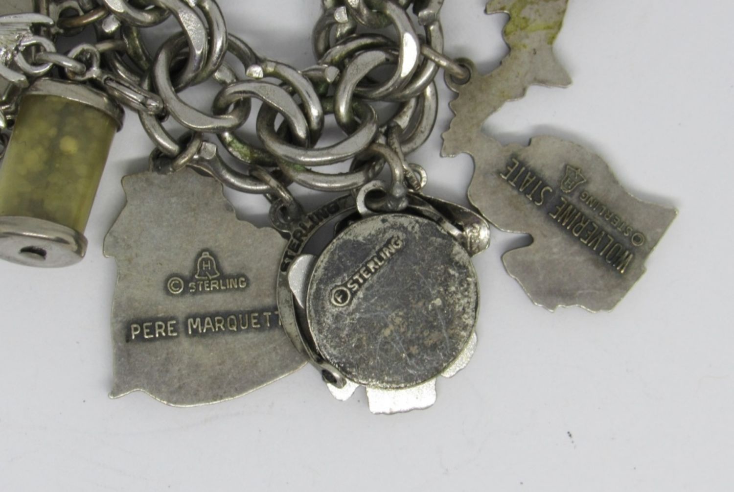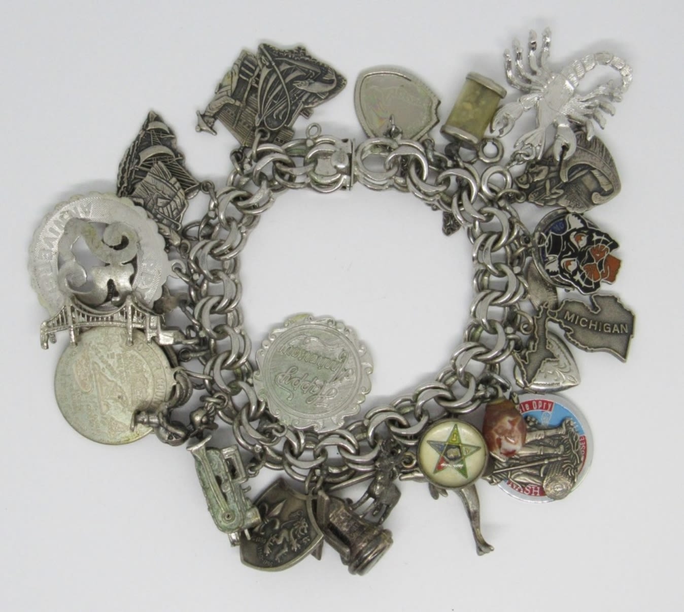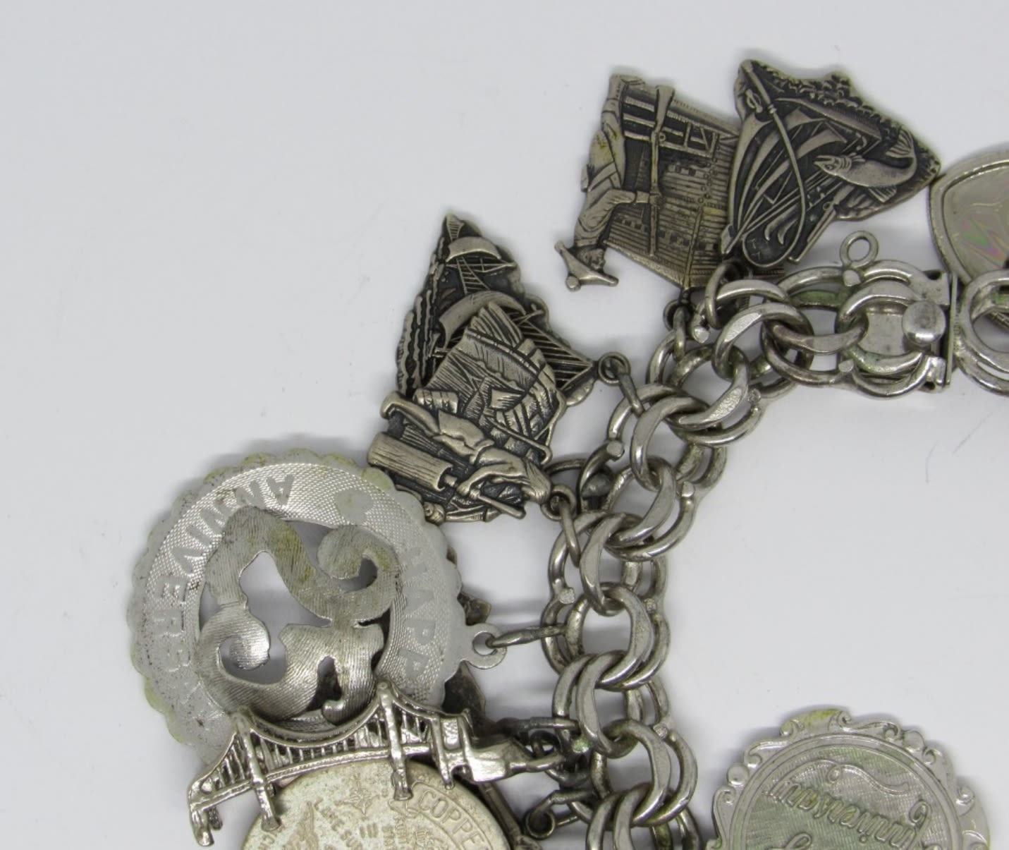 STERLING SILVER CHARM BRACELET WITH MULTIPLE SOUVENIR CHARMS FROM ACROSS THE U.S. (69 DWT)