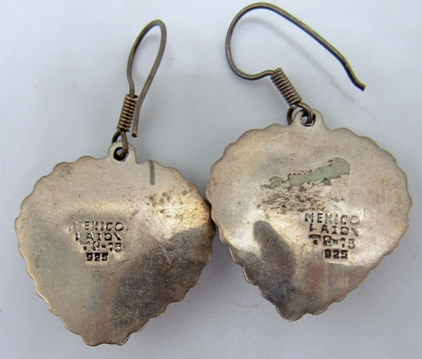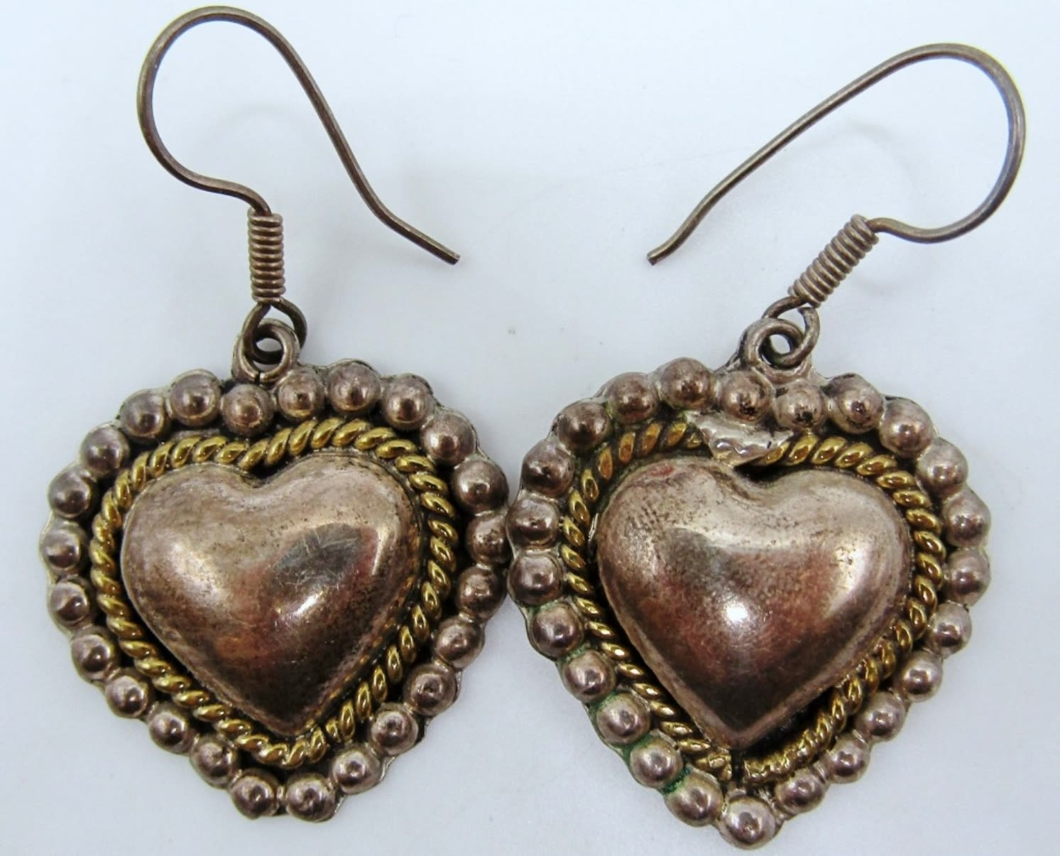 18.4dwt,hoops marked Thai and 925, heart dangle earrings with a gold rope tone , marked mexico tr-73 925, siam dangle earrings marked 925