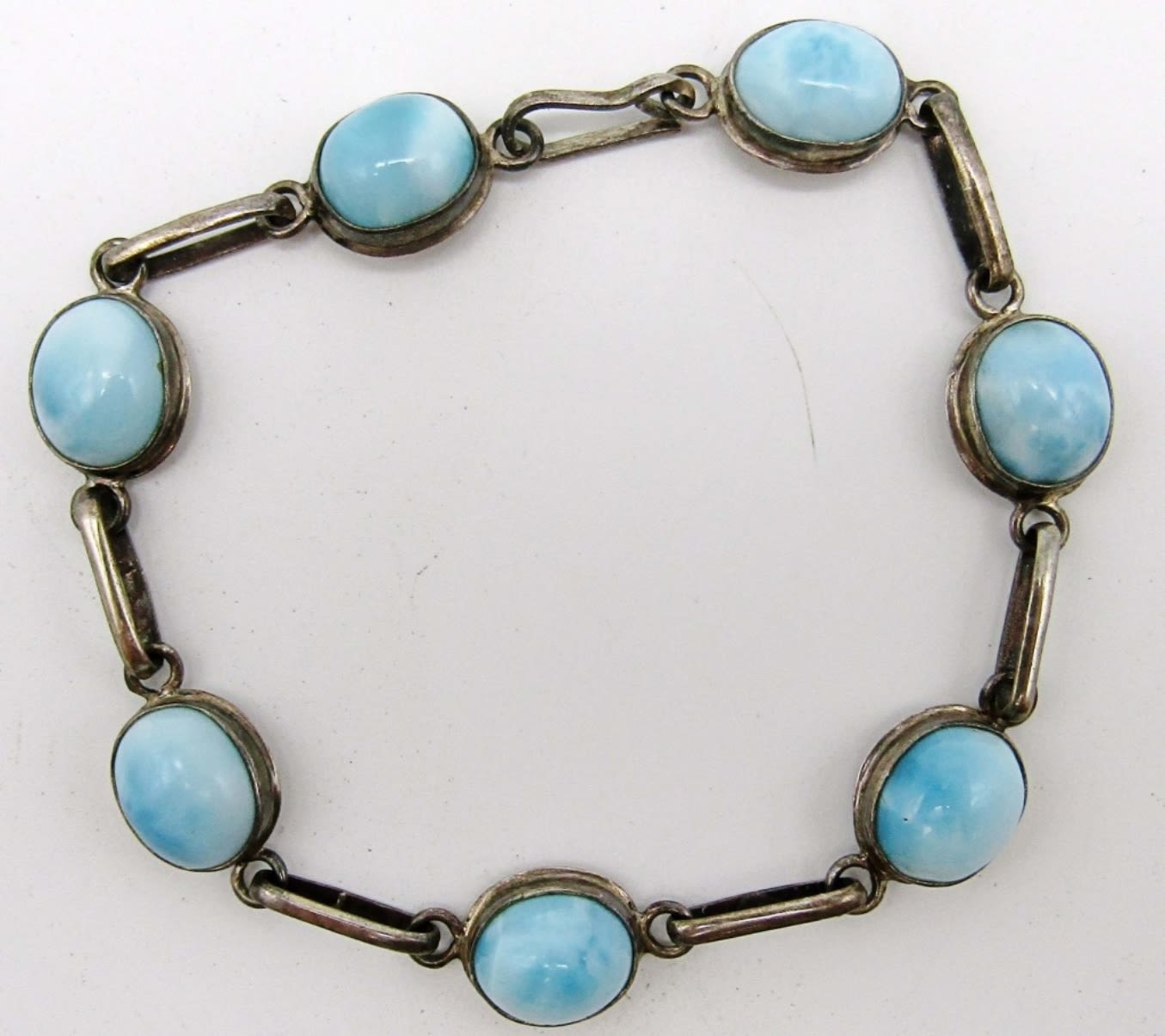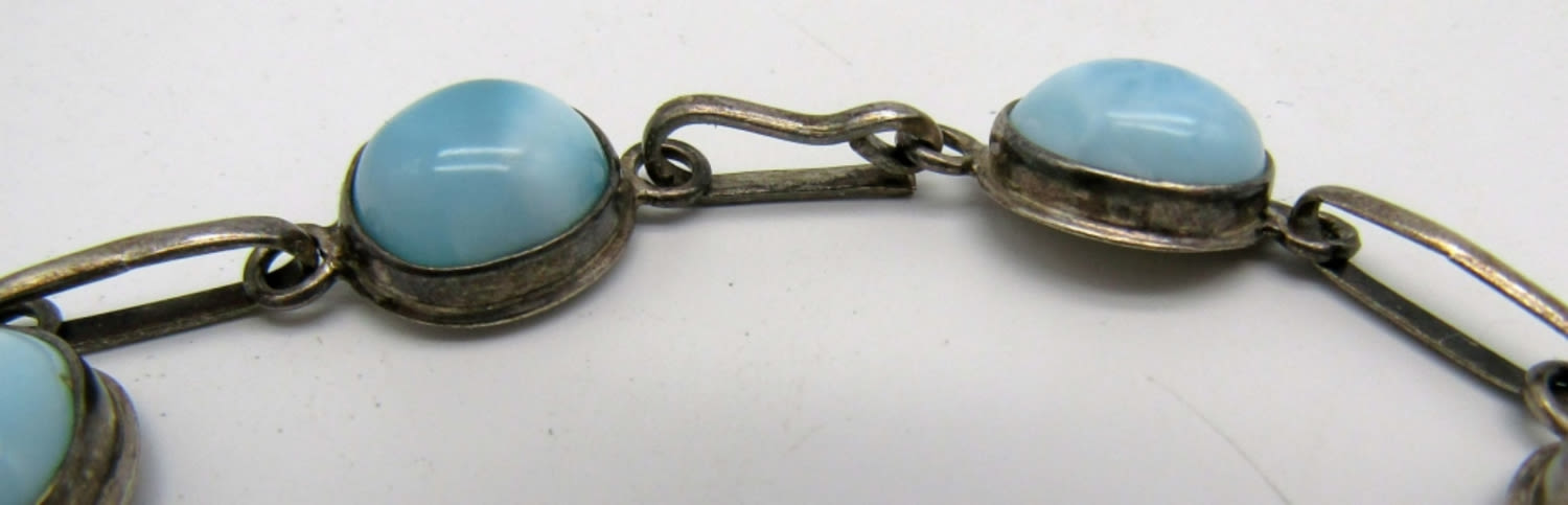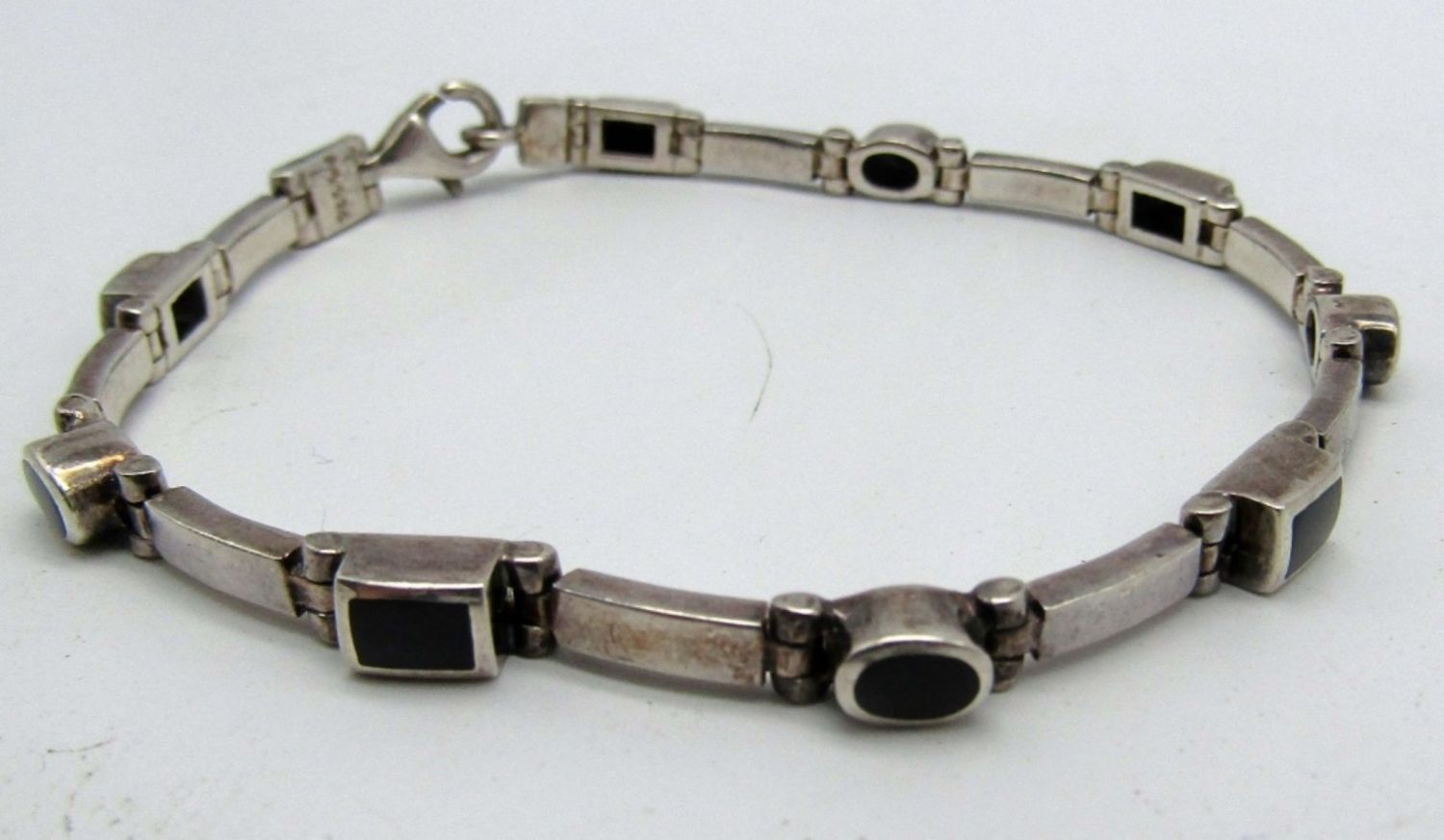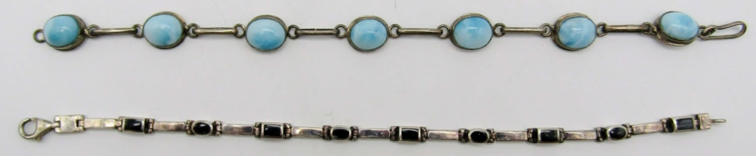 One 8in has light blue gemstones marked 925, second 7 1/2in with black onxy inlay stone marked 925, 15dwt