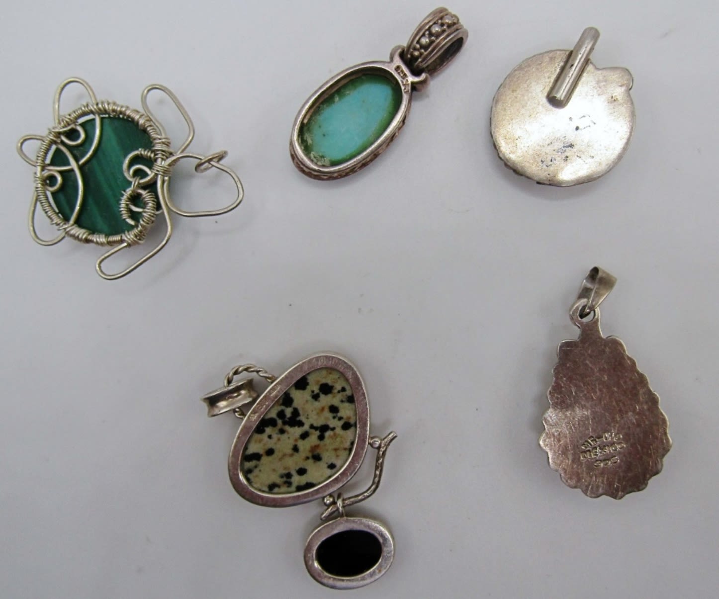one turtle shape w/jade stone,mother of pearl with a leaf and fram design, sleeping beauty inlay stone, inlay natural stone, dalmation jasper with a black onyx stone. 22dwt