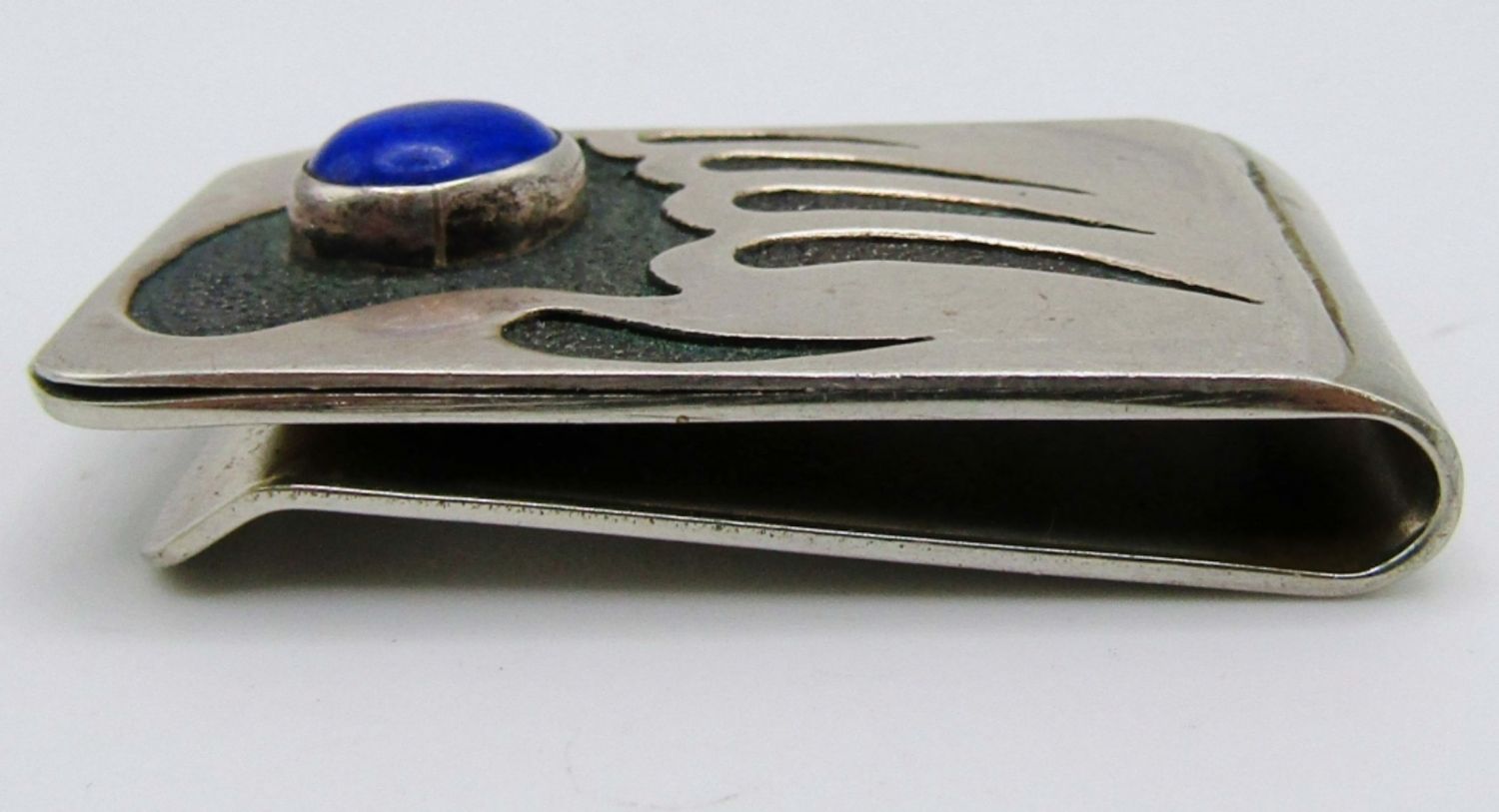 A bear claw with a lapis stone in the middle, marked sterling and J.N along with another unknown marking., 15dwt