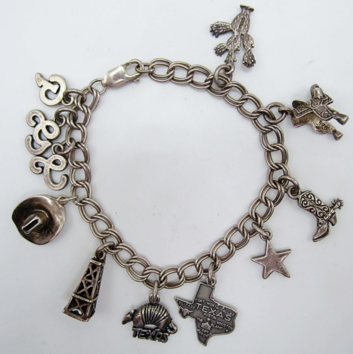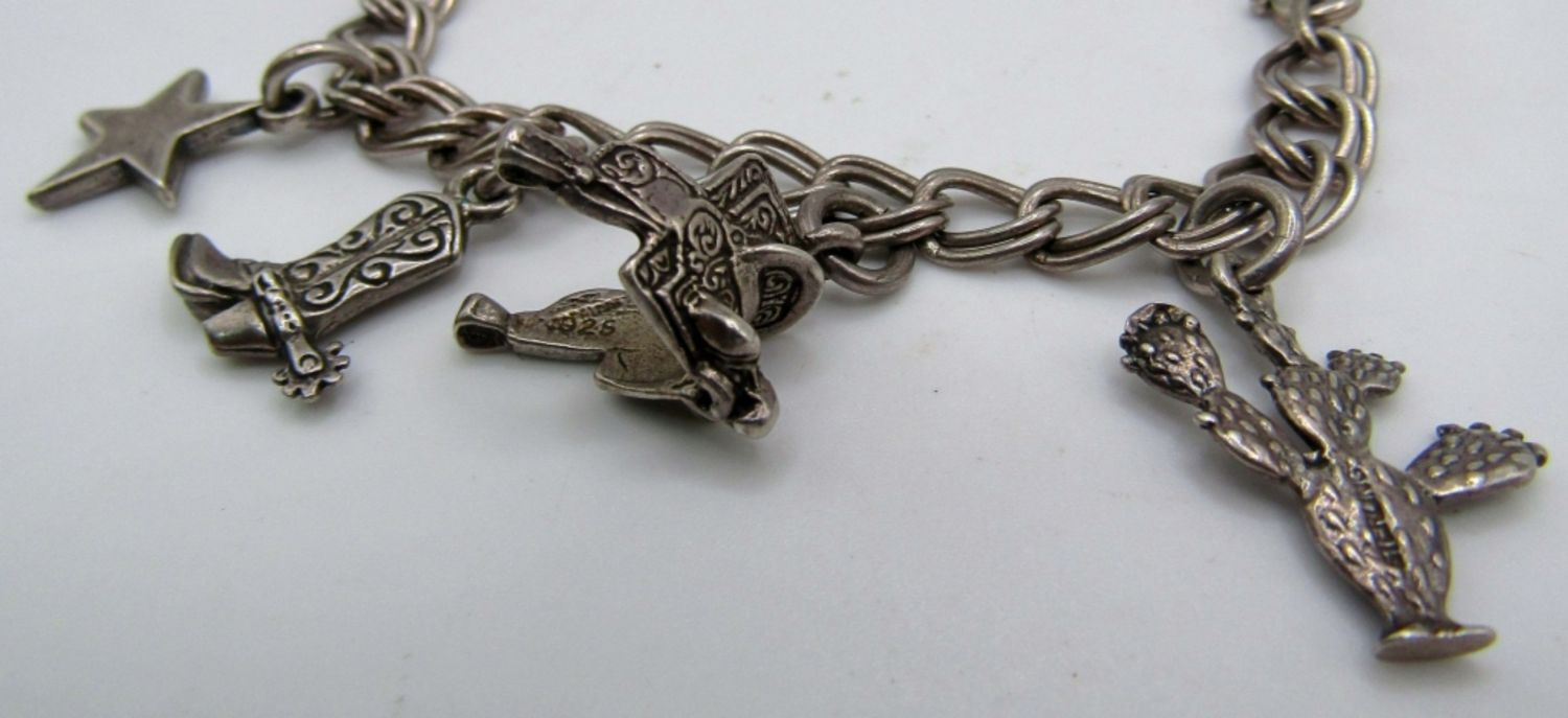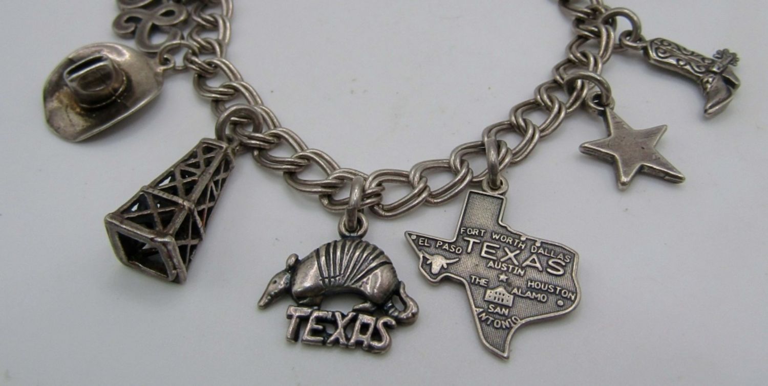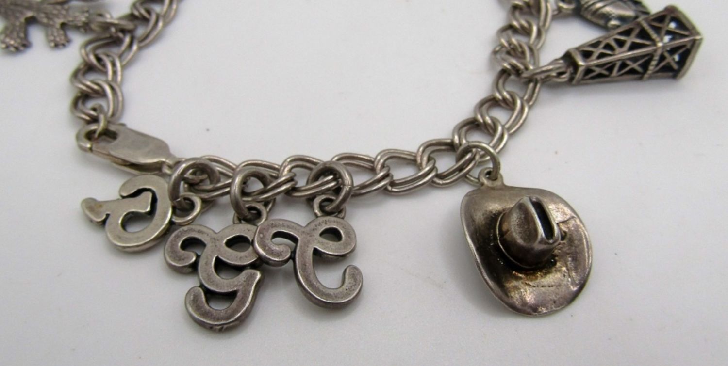 18 dwt, 11 charms attached all texas theme from a cactus to cowboy hat to a boot and the state shape just for an example