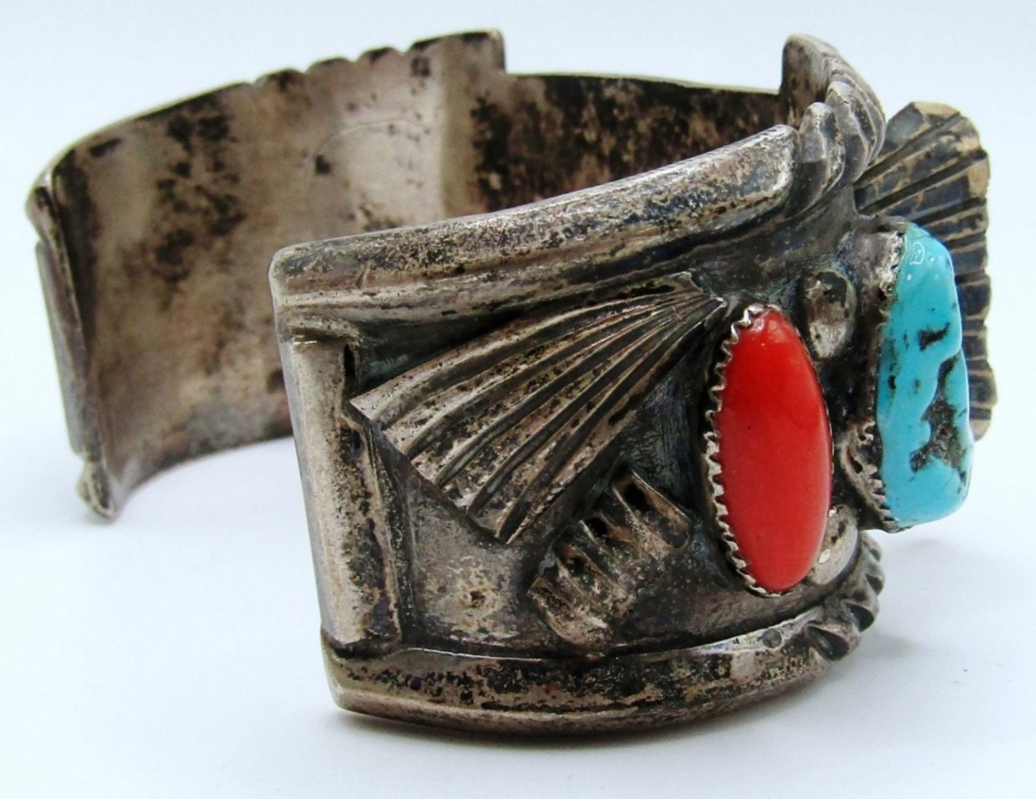 72dwt, marked inside with J. Martinez and a arrow, has chucky turquoise and coral