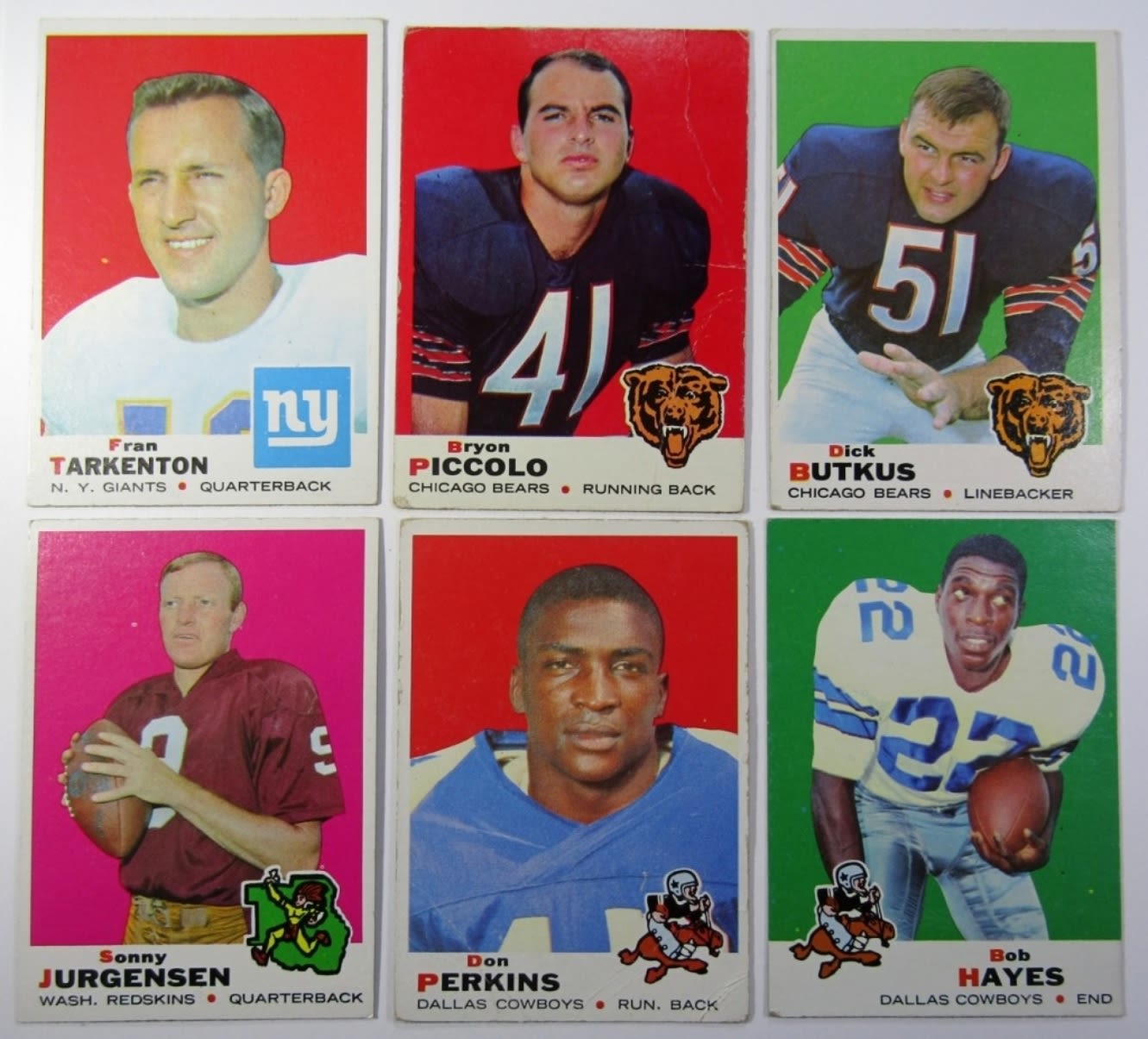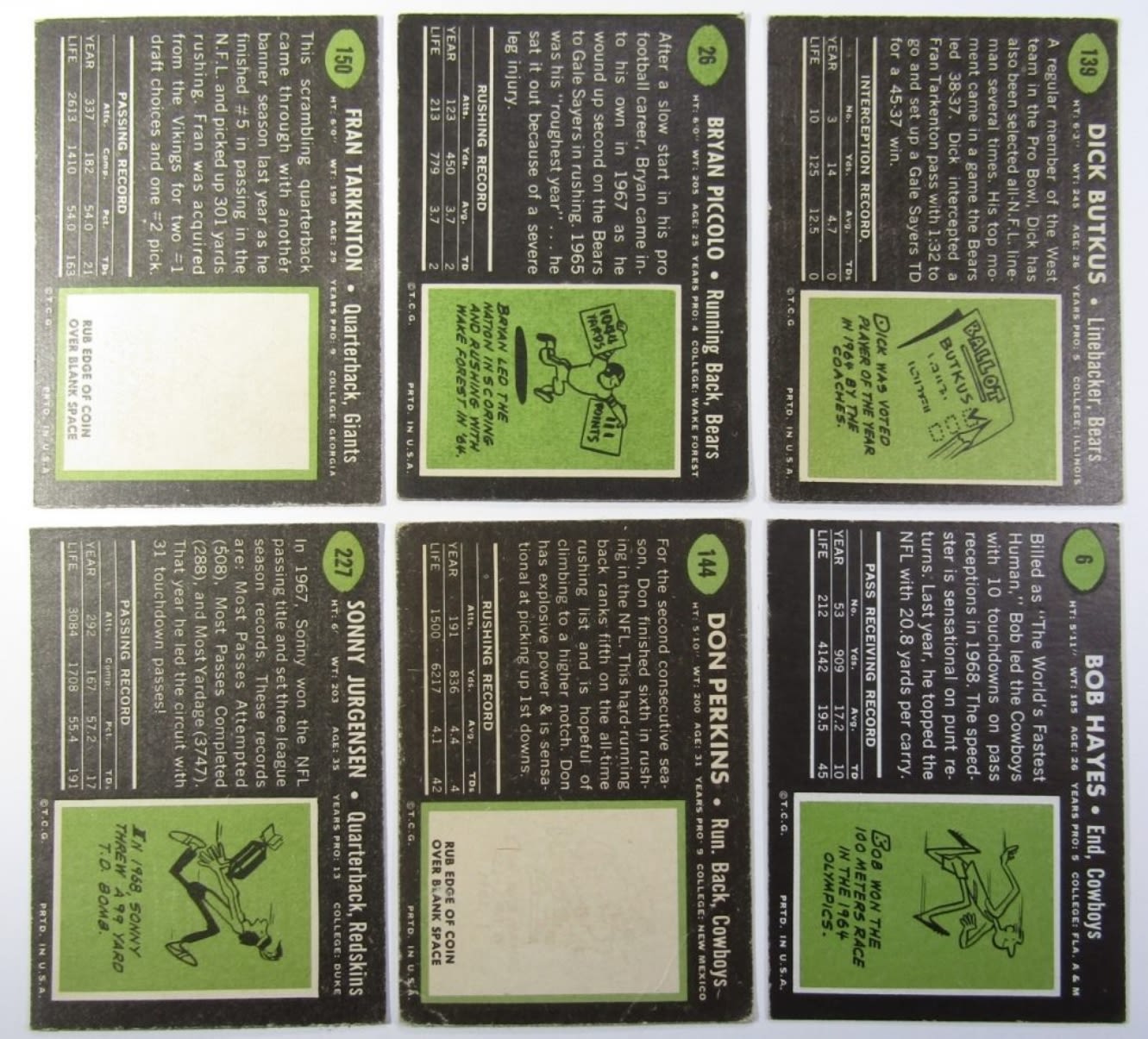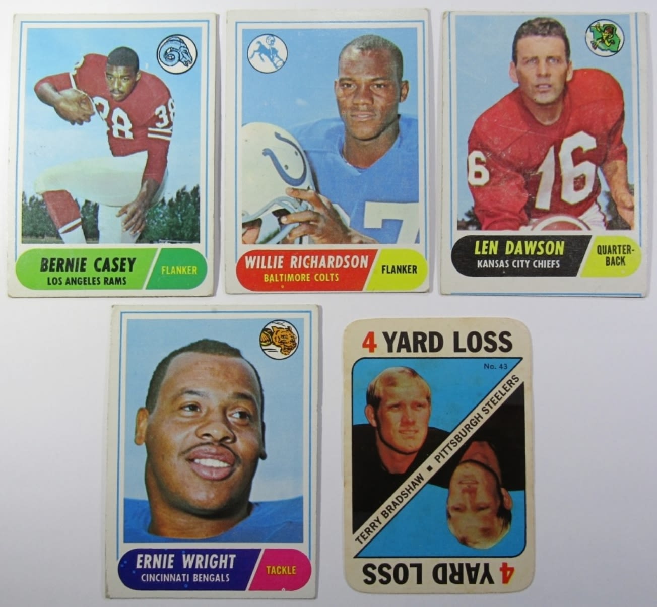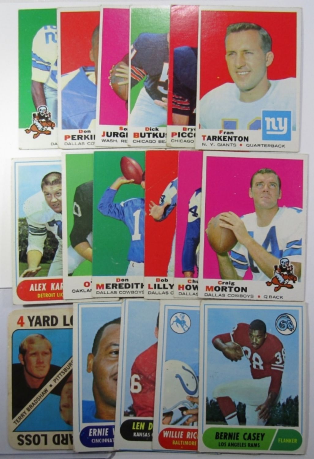 1971 TOPPS GAME TERRY BRADSHAW VG, (5) 1968 TOPPS, (11) 1969 TOPPS TARKENTON, PICCOLO, BUTKUS & MORE – VG/VGEX LOT