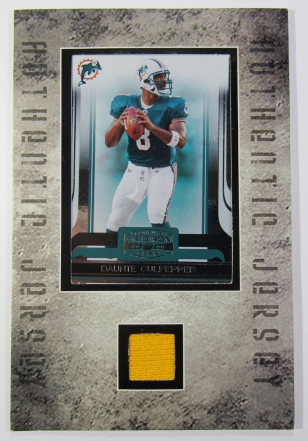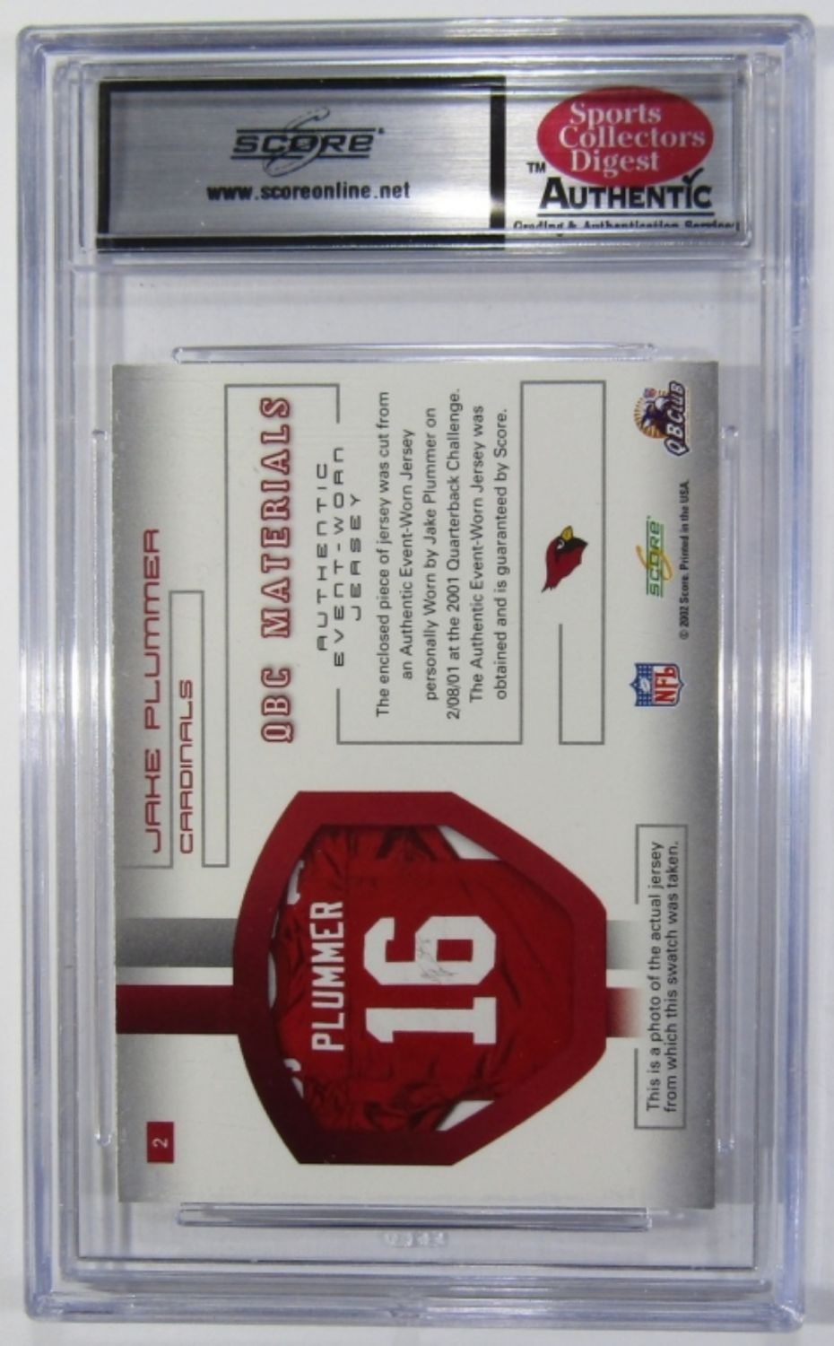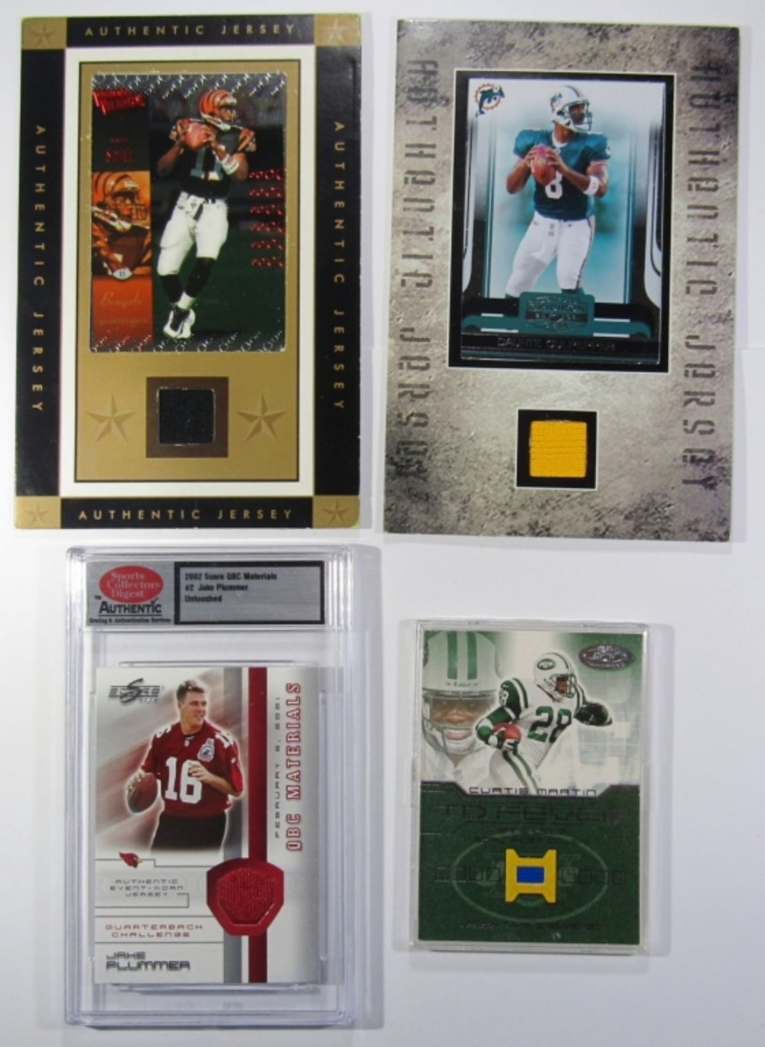 CURTIS MARIN GAME USED GOAL POST COVER; 2002 JAKE PLUMMER AUTH JERSEY; DAUNTE CULPEPPER JERSEY; AKILI SMITH AUTH JERSEY