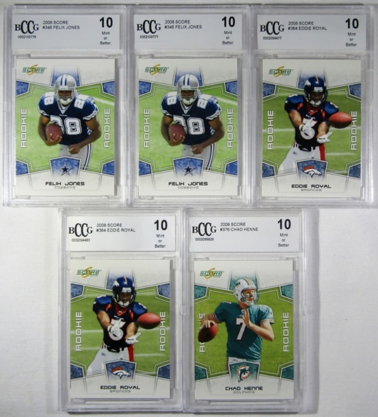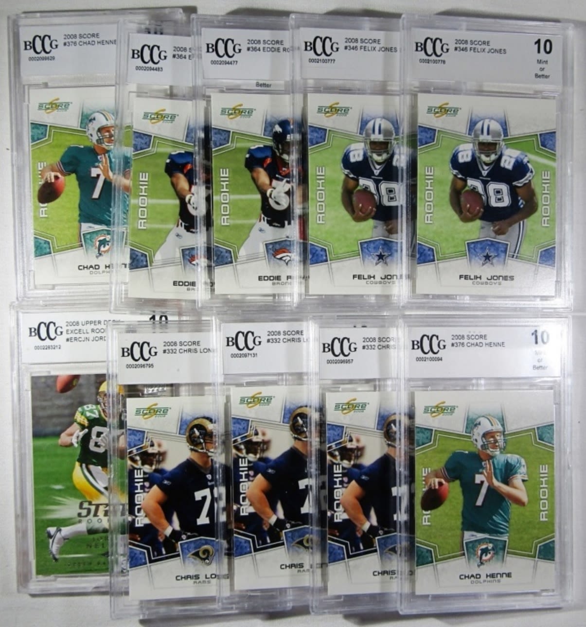 (10) BCCG 10 FOOTBALL ROOKIE CARDS