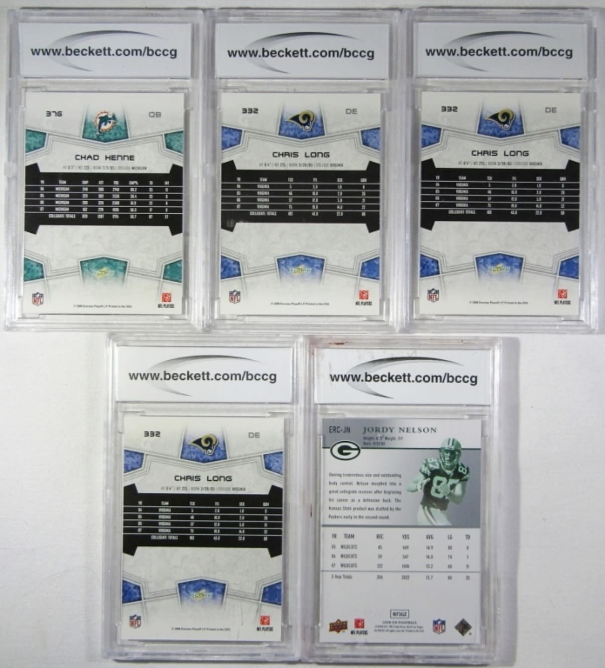 2008 SCORE JORDY NELSON, (3) CHRIS LONG, (2) CHAD HENNE, (2) EDDIE ROYAL, (2) FELIX JONES