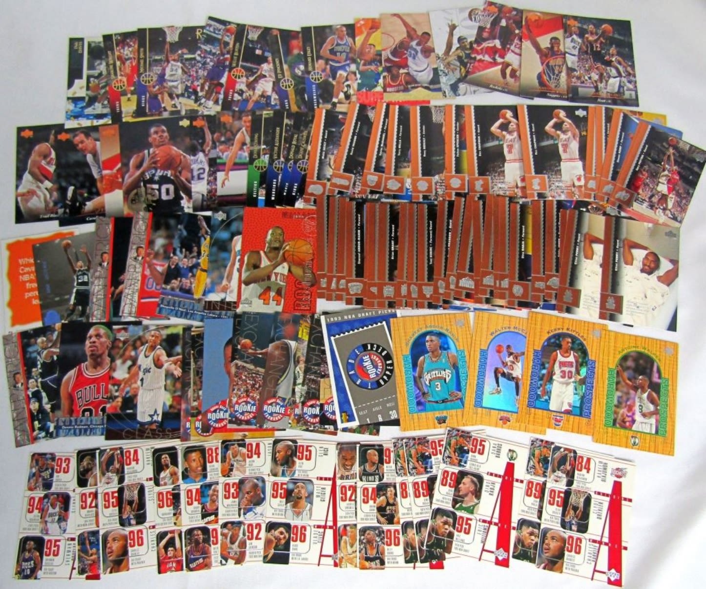 GREAT MIX – (4) 97-98 UD3, (11) 93-94 EXCHANGE INSERTS, (4) ’96 BUILDING WINNER, (9) MIX INSERTS, (61) UPPER DECK BASKETBALL CARDS with STARS – MOSTLY ALL DIFFERENT – EM/NM/MT