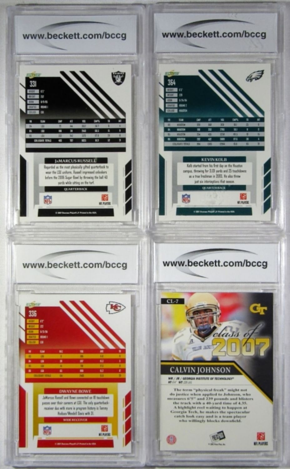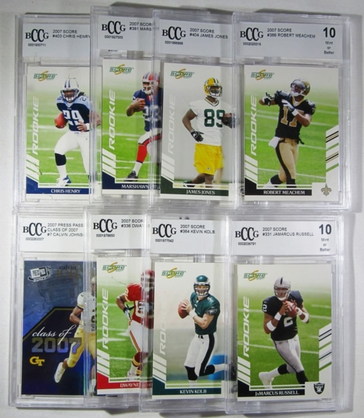 2007 SCORE MEACHEM, JONES, LYNCH, HENRY, RUSSELL, KOLB, BOWE, 2007 PRESS PASS JOHNSON