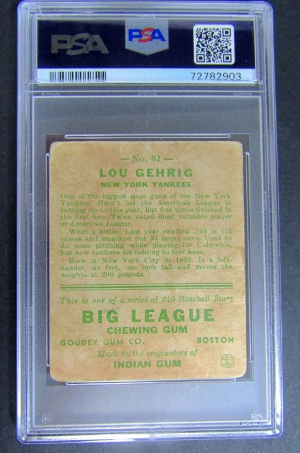 HOFer LOU GEHRIG ROOKIE CARD- INVESTMENT CARD
