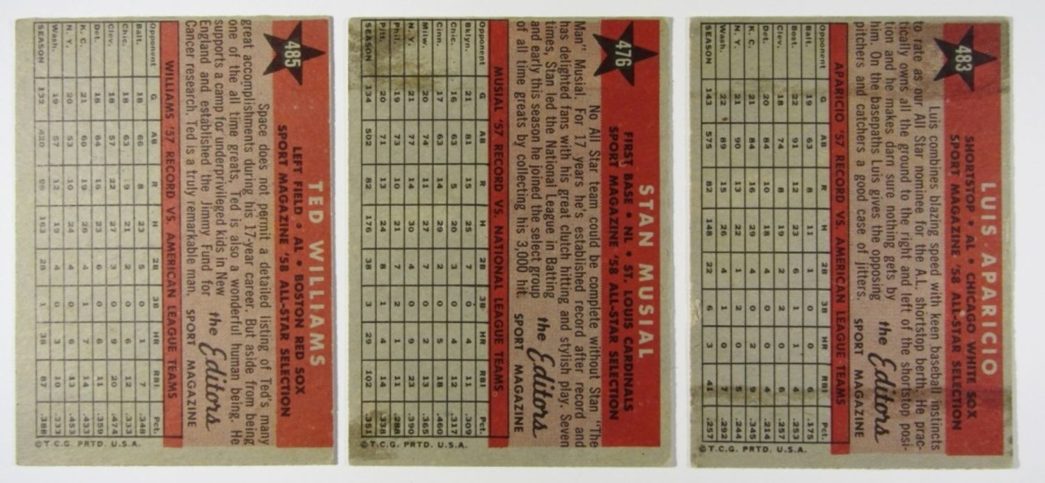 #483 APARICIO VG+, #476 MUSIAL EX+, #485 WILLIAMS EX 10/90