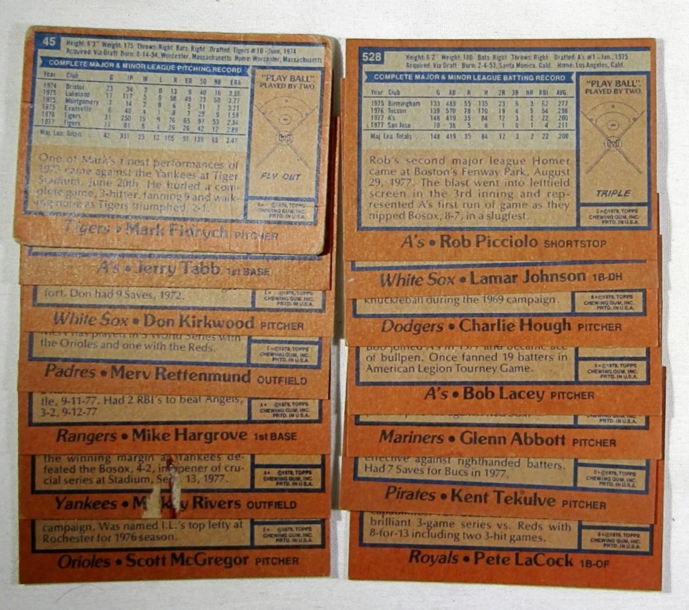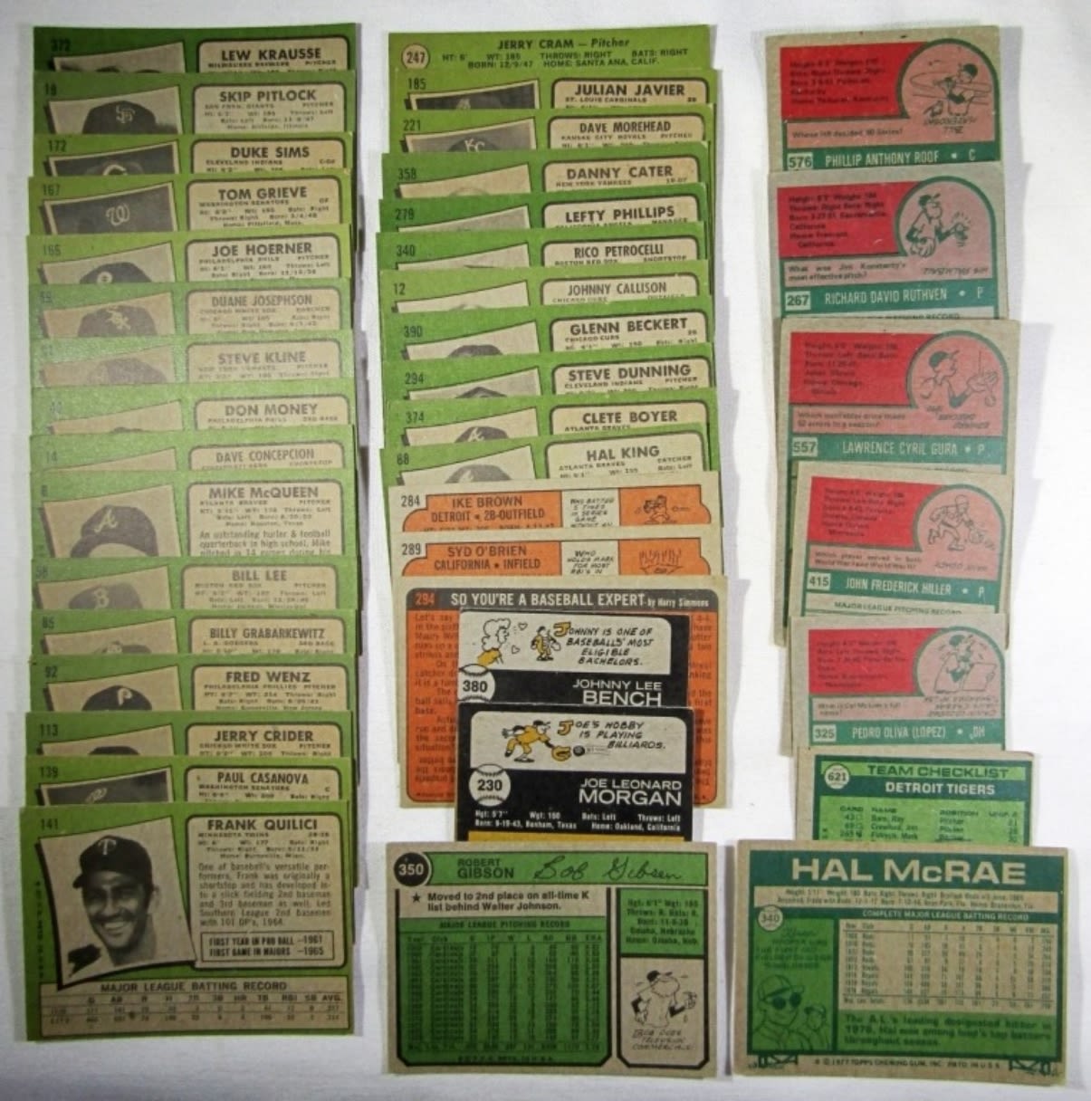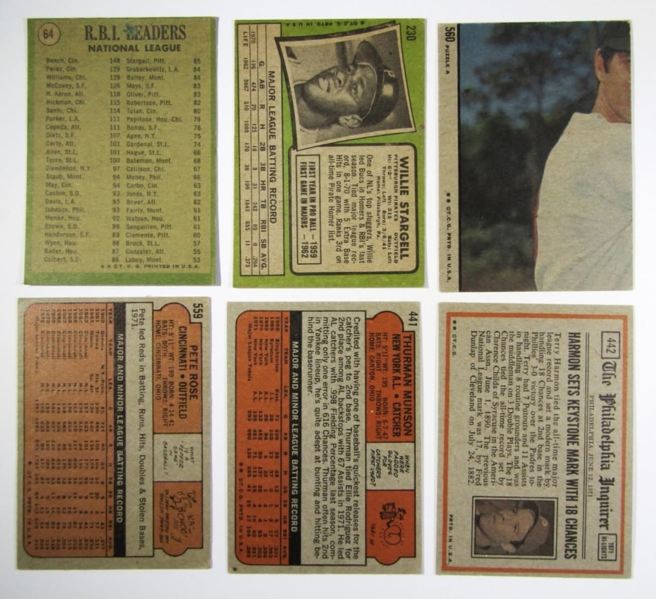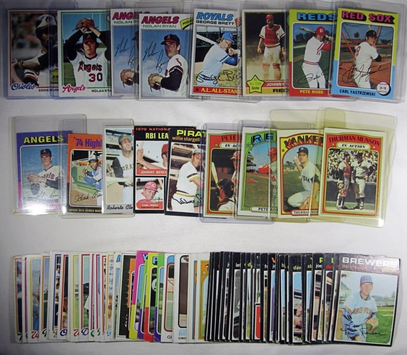 1970 TOPPS CLEMENTE, 1971 TOPPS STARGELL & LDRS, 1972 TOPPS PETE ROSE, ROSE IA, MUNSON, MUNSON IA, 1973 TOPPS BENCH, MORGAN, 1975 TOPPS MINI RYAN, AARON HIGHLIGHTS, PETE ROSE, YASTRZEMSKI, 1976 TOPPS BENCH, 1977 TOPPS