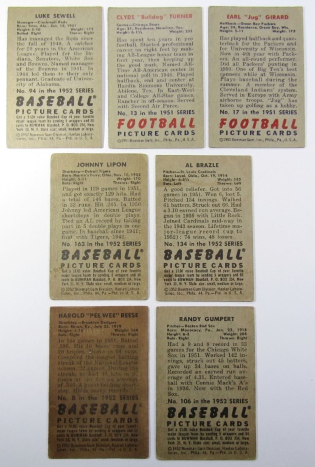 (19) 1951 BOWMAN with (2) FOOTBALL, (5) 1952 BOWMAN