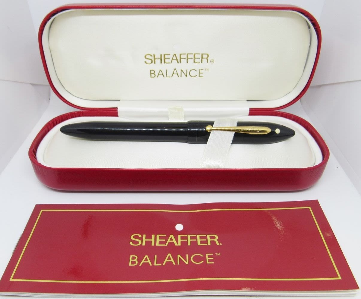 Vintage Black Lifetime Fountain Pen in Red Leather Case, 14K Gold Tip, with Refills