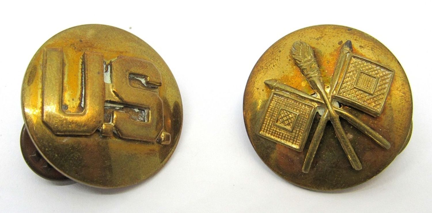 OLD IRONSIDES PATCH plus (2) other MILITARY PATCHES, (2) PIN BACK BUTTONS, GOLD TONED MILITARY BUCKLE, GOLD EAGLE LAPEL BUTTON