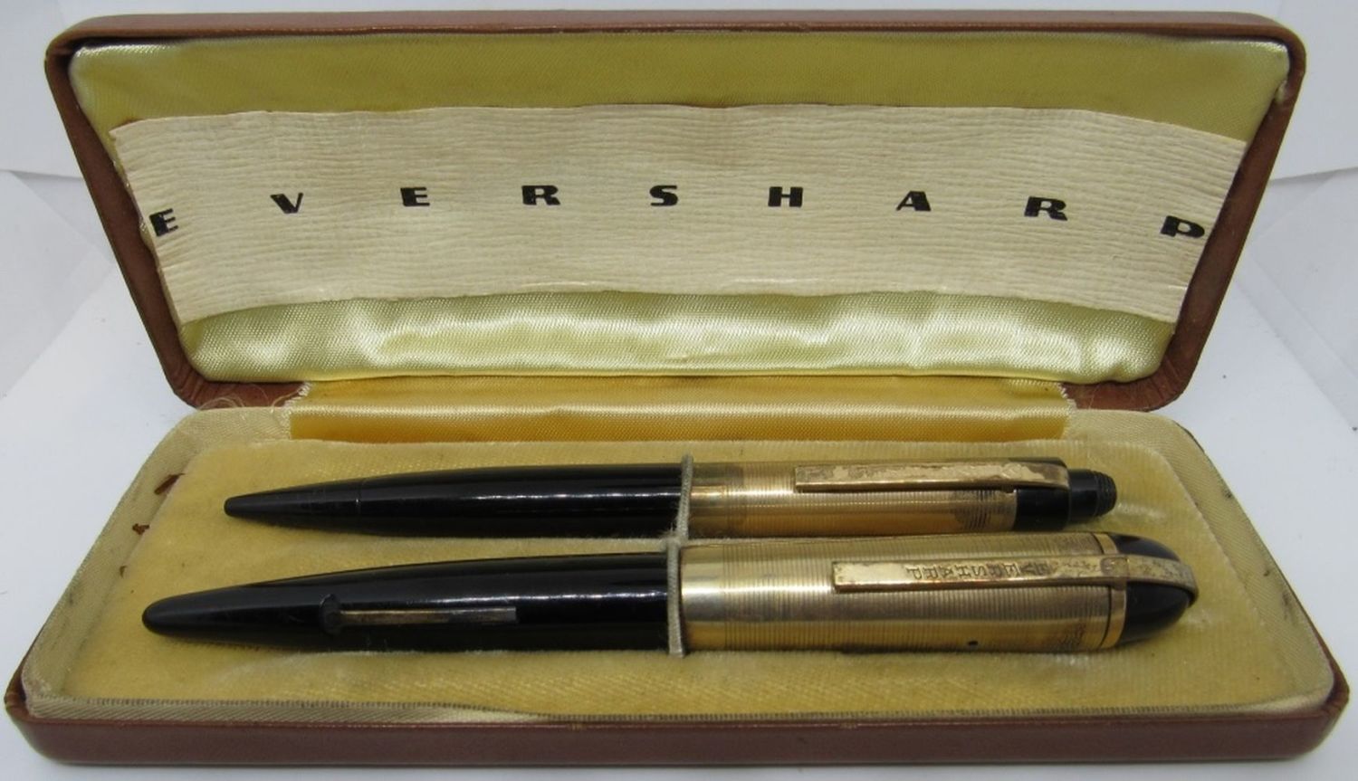Vintage Eversharp Fountain Pen & Pencil Set, Black & Gold, with Case