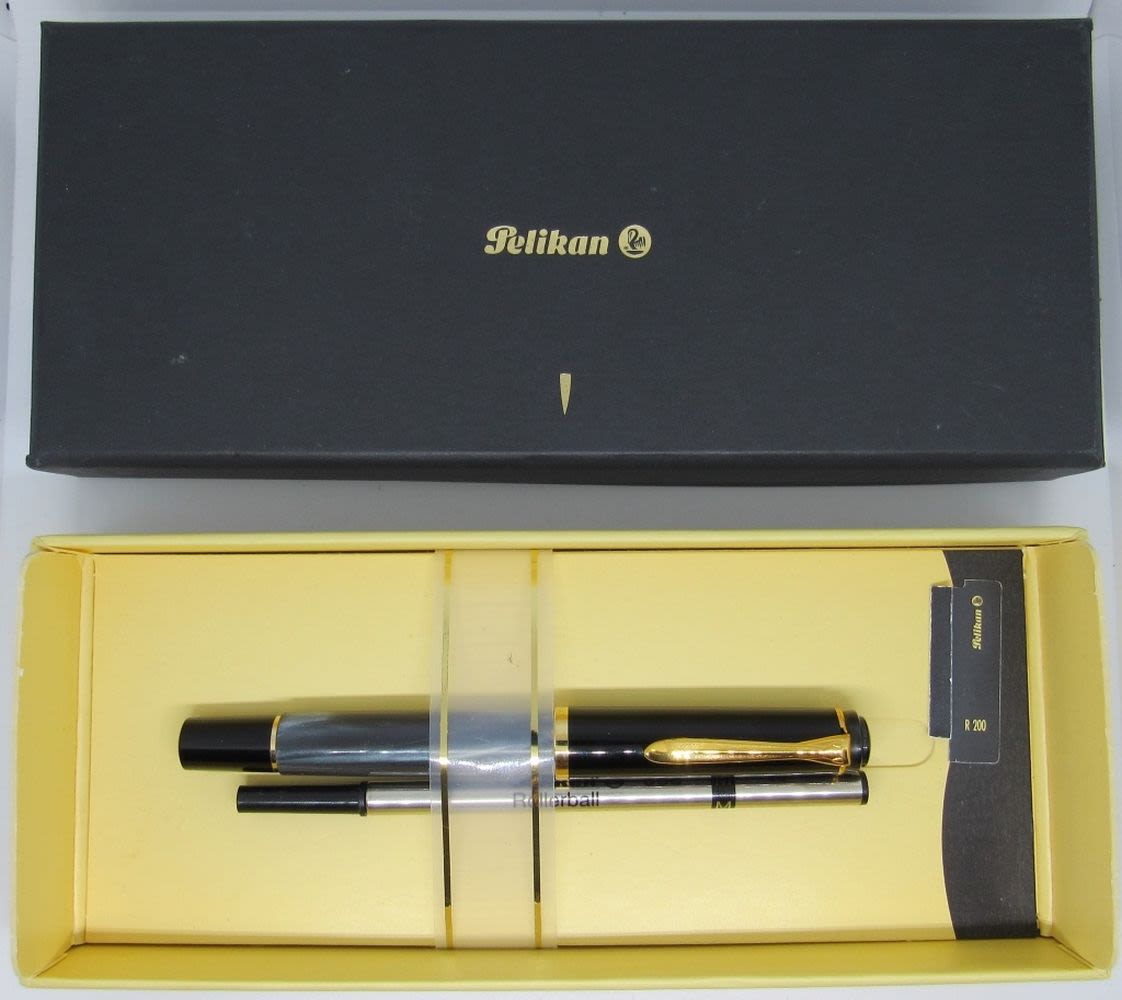 Pelikan Souveran R200 Roller Ball Pen, Jade Marble w/ Gold Trim, New in Box, w/ Refill