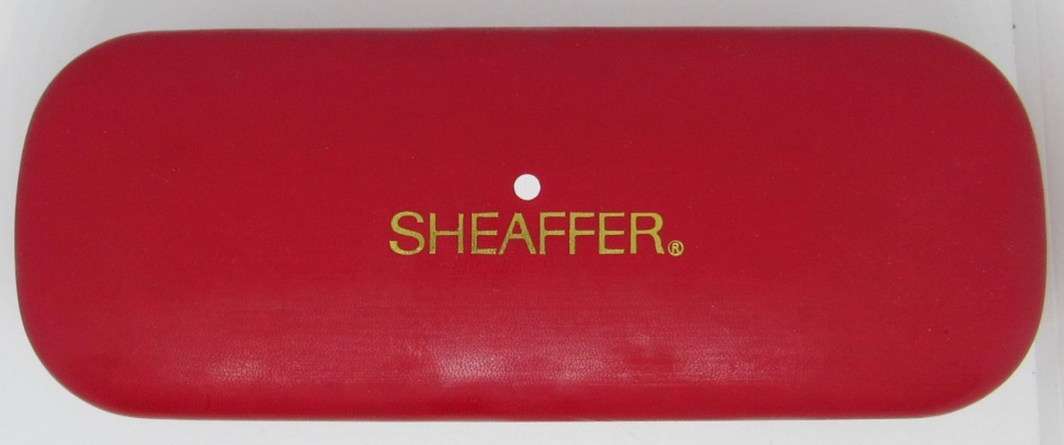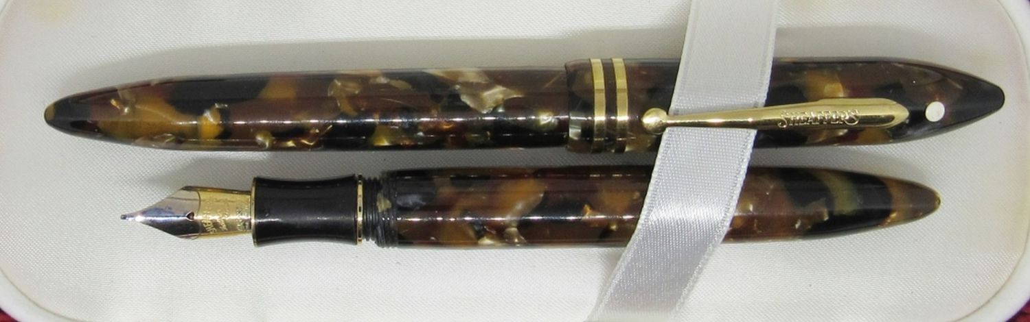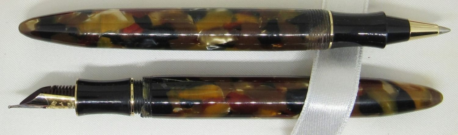 Vintage Lifetime Fountain Pen Set in Red Leather Case, Amber Marble, 18K Gold Tip, with Refill