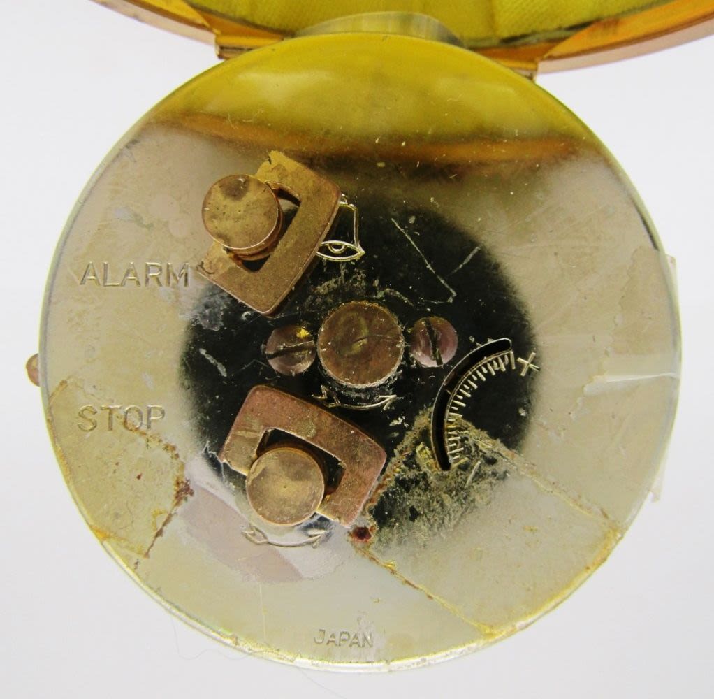Clock, Traveling Wind Up Alarm Clock Made In Japan, WORKING! (Frame is Detaching from Clock, Needs Fixed.)