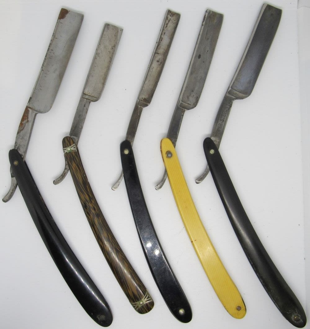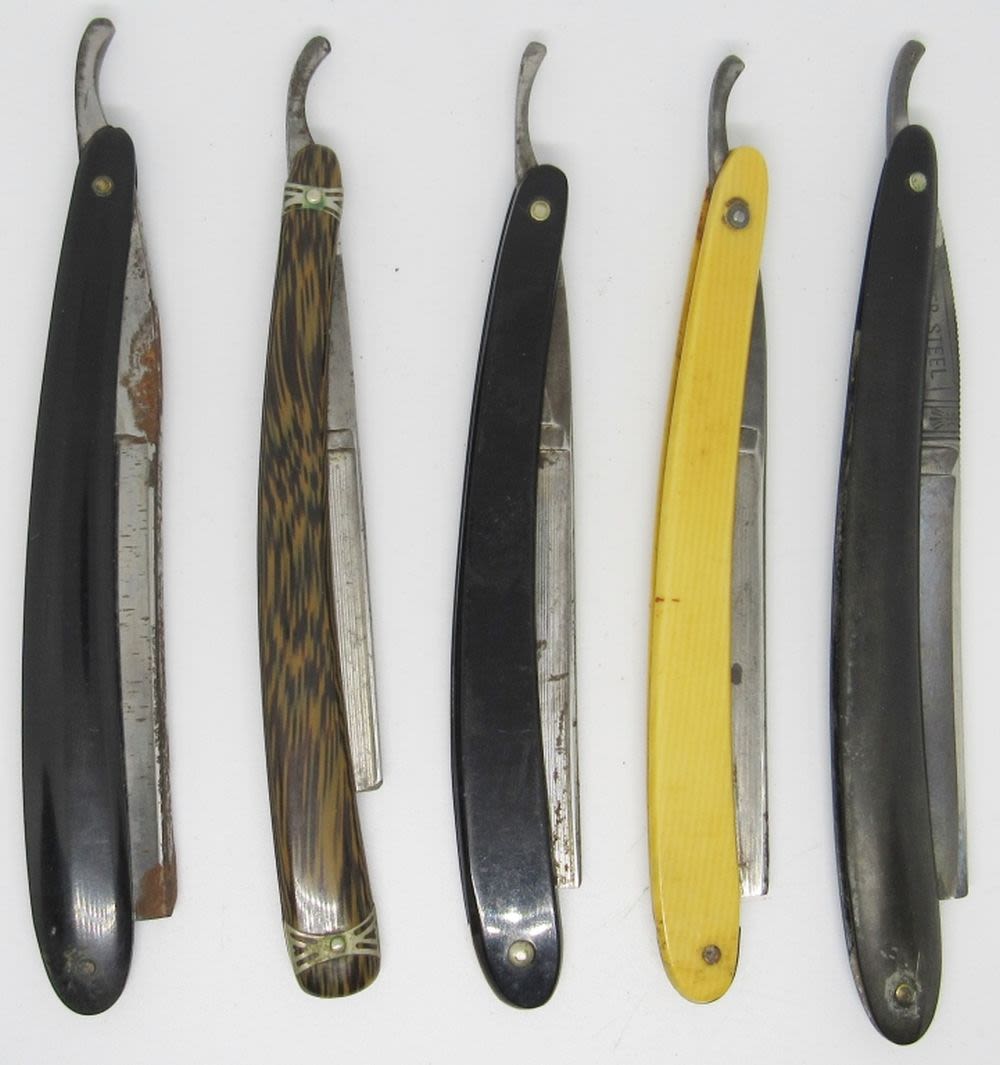 Shumate Barber Razor Co. St. Louis, Mo; Silver Steel Presbrey = Field Co. Taunton, Mass., Finest “Special” Grade Blade; Blue Seal, Garanti Solingen, Imperial Razor Extra Hollow Ground Fully Warranted Registered