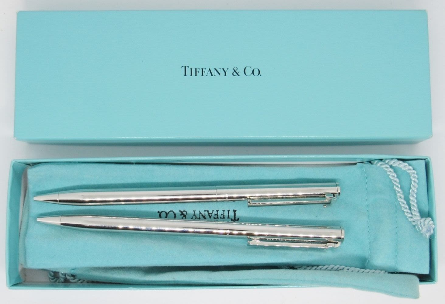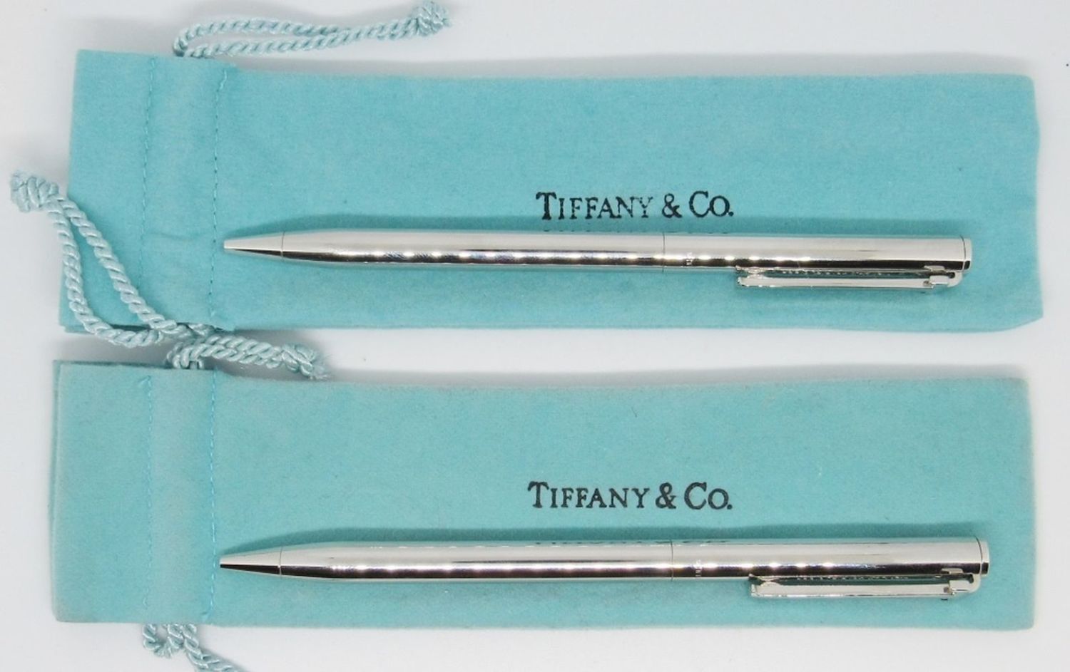 Tiffany & Co. Authentic Silver Pen Set of 2 with Pouches, New In Box