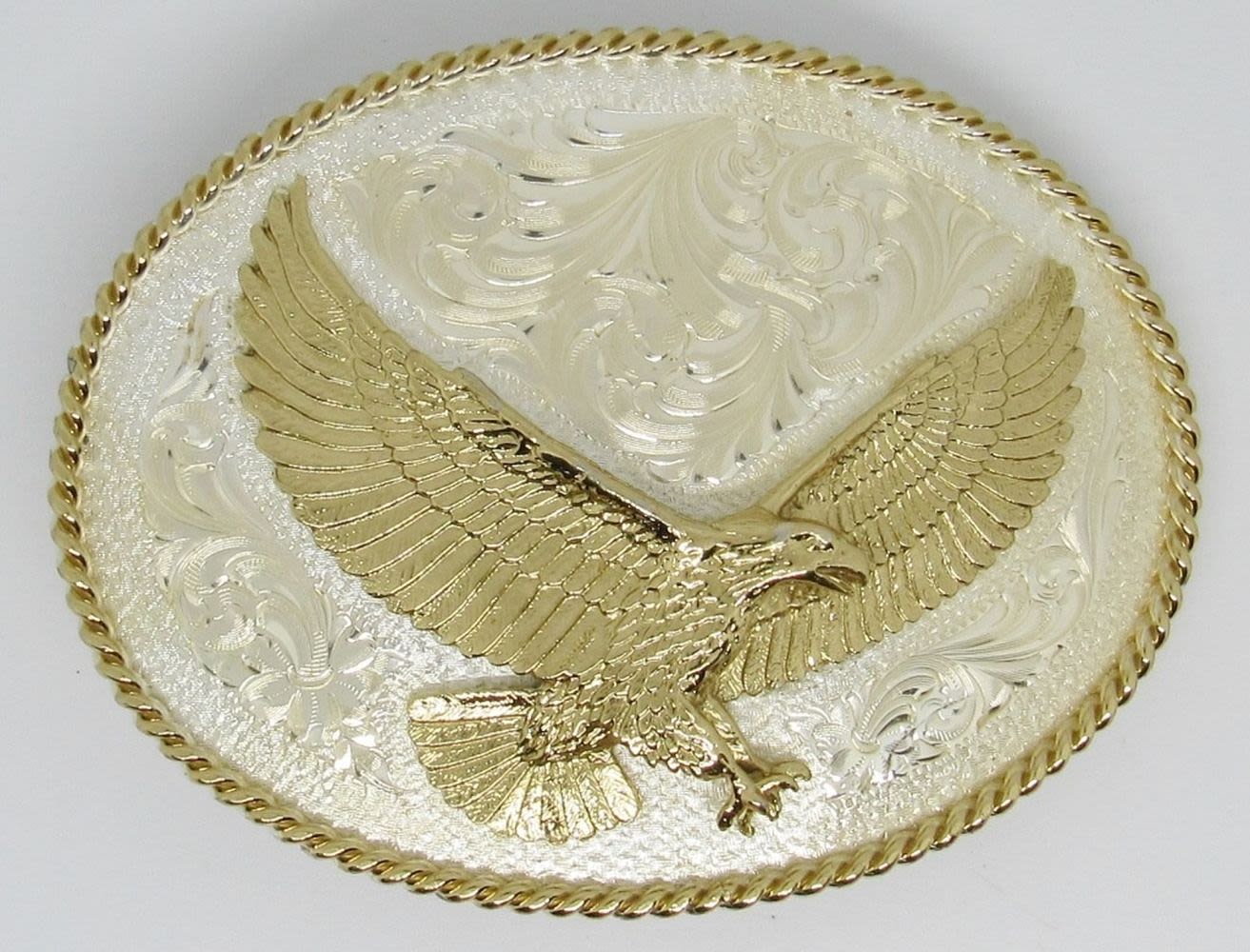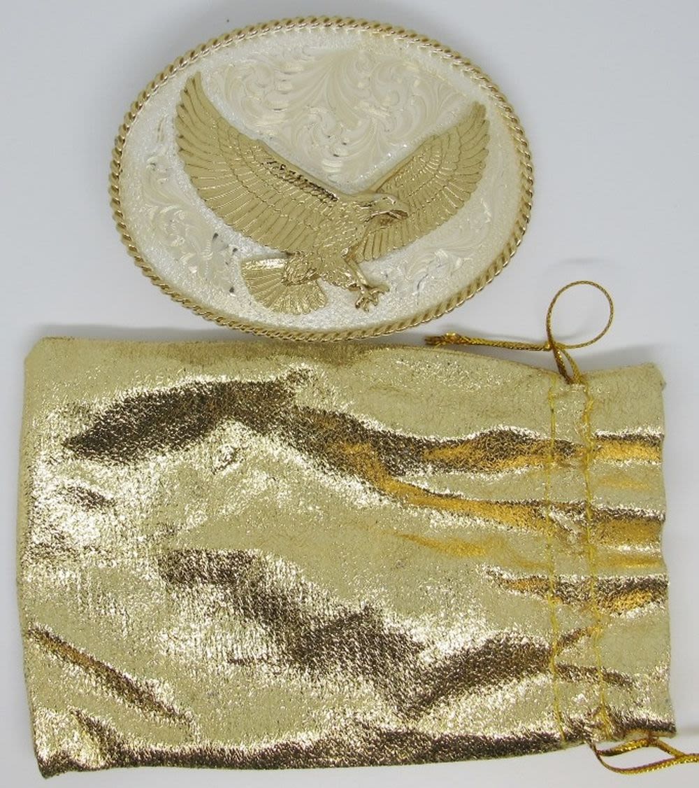 Montana Silversmiths American Eagle Western Belt Buckle, Gold on Silver