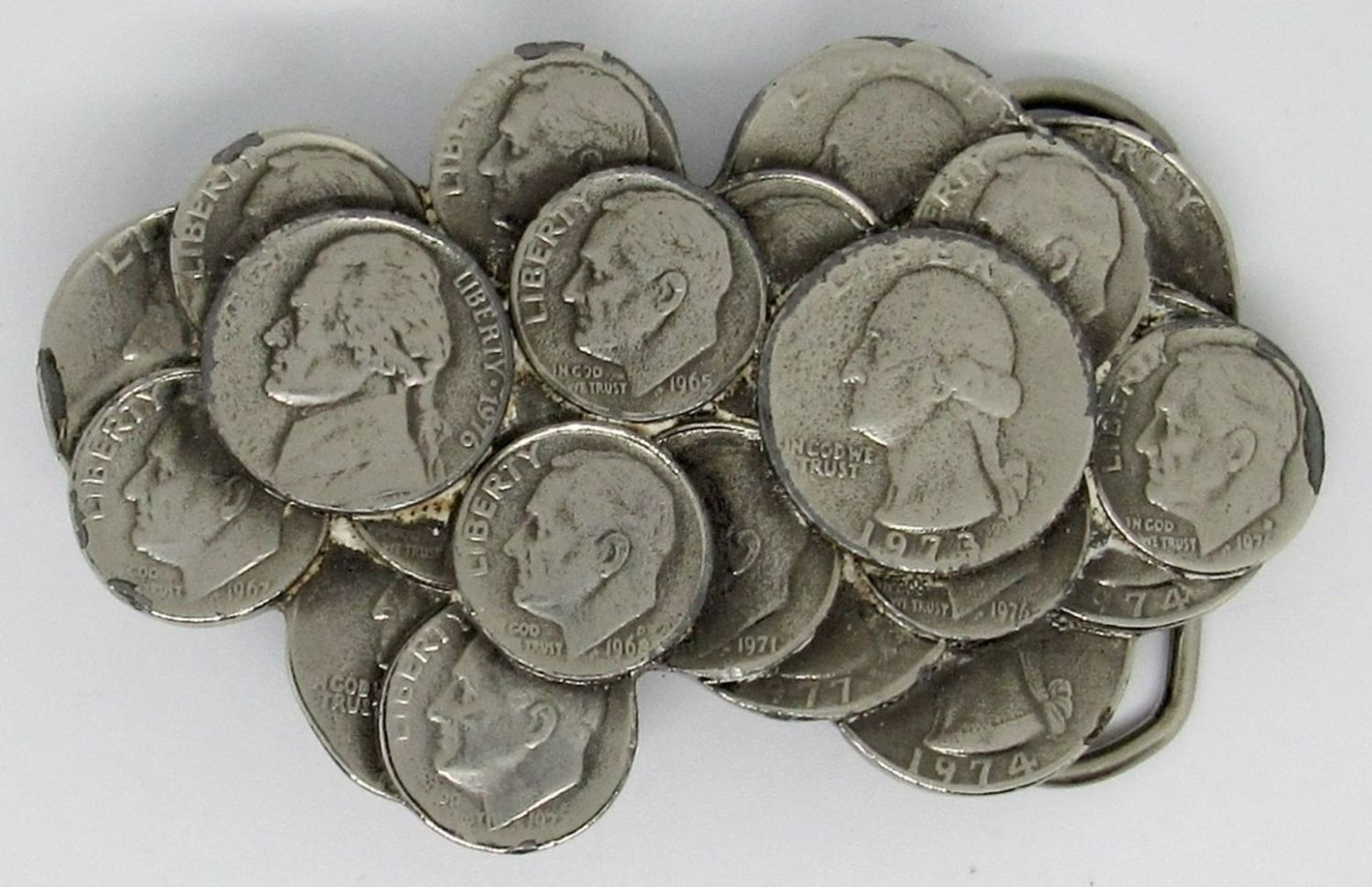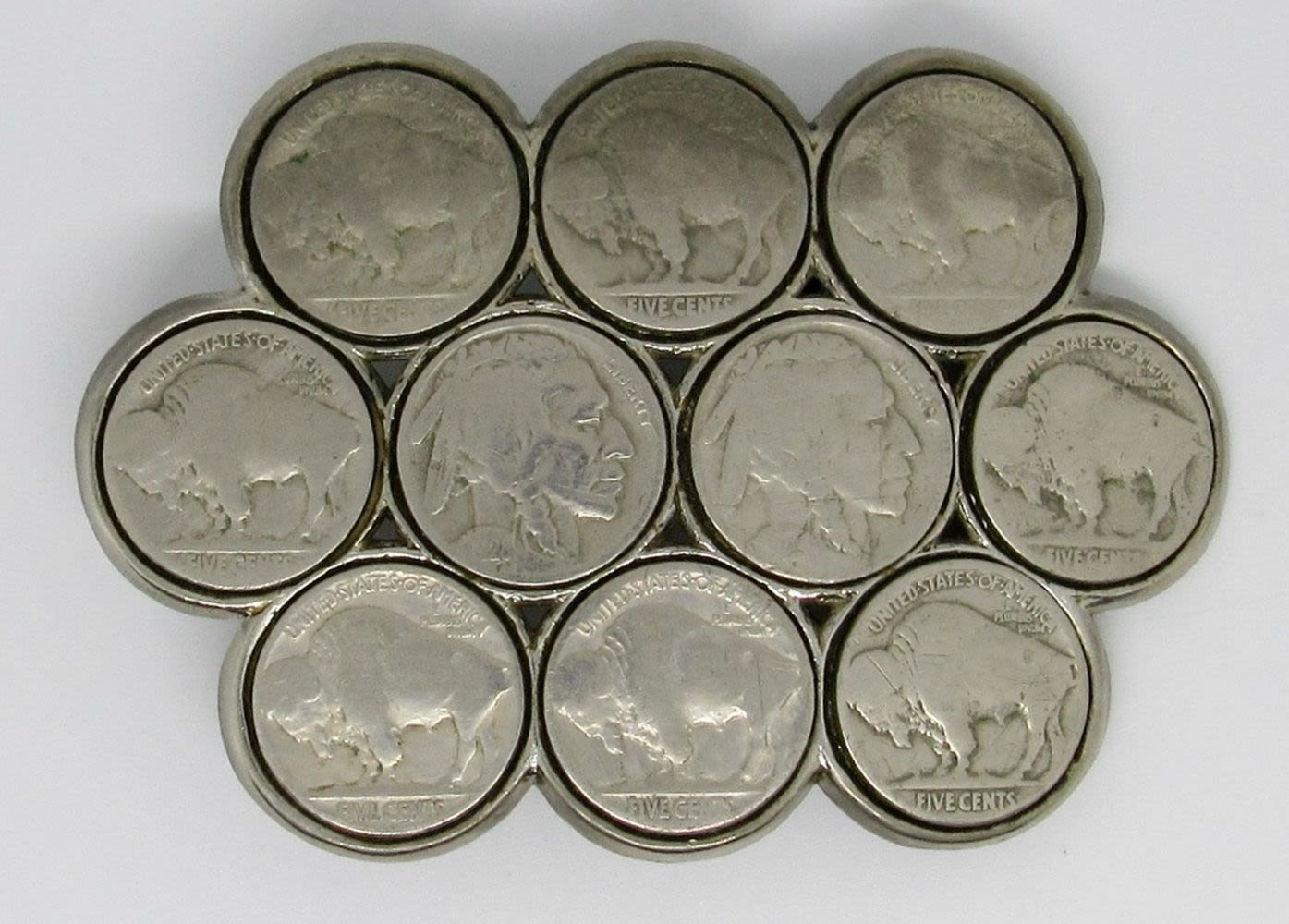 Set of 3 Vintage Belt Buckles w/ Coin Designs, Indian Head Buffalo Nickel, Washington Quarter