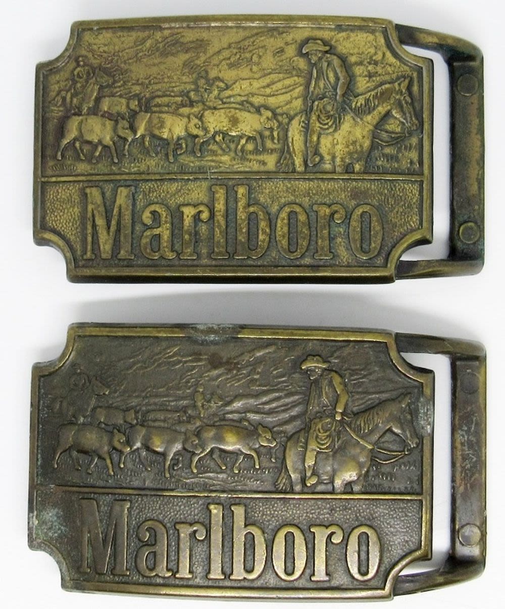 Set of 2 Matching Marlboro Brass Belt Buckles, Cowboy Cattle Drive Design