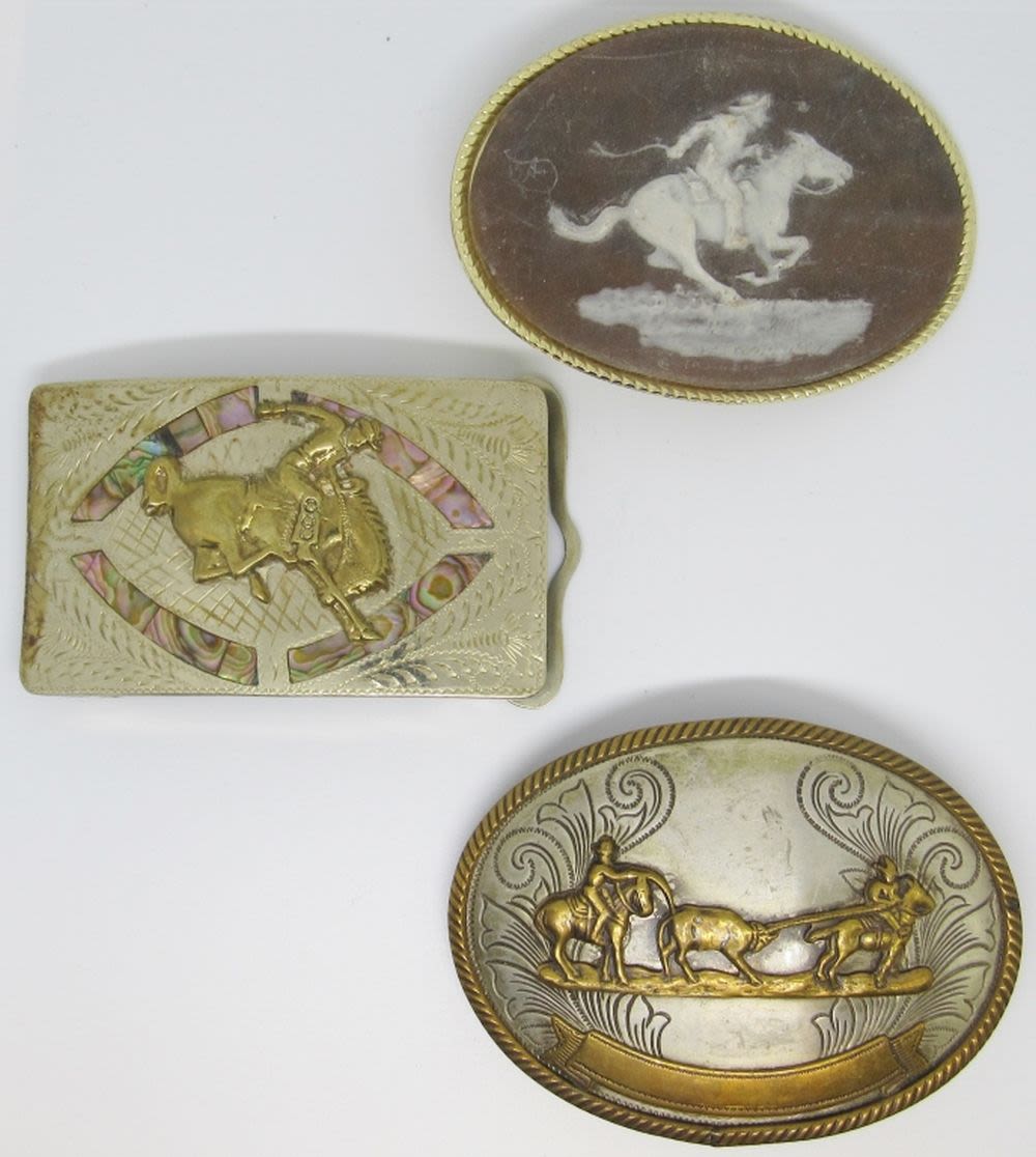 Set of 3 Vintage Belt Buckles w/ Southwest Cowboy Designs