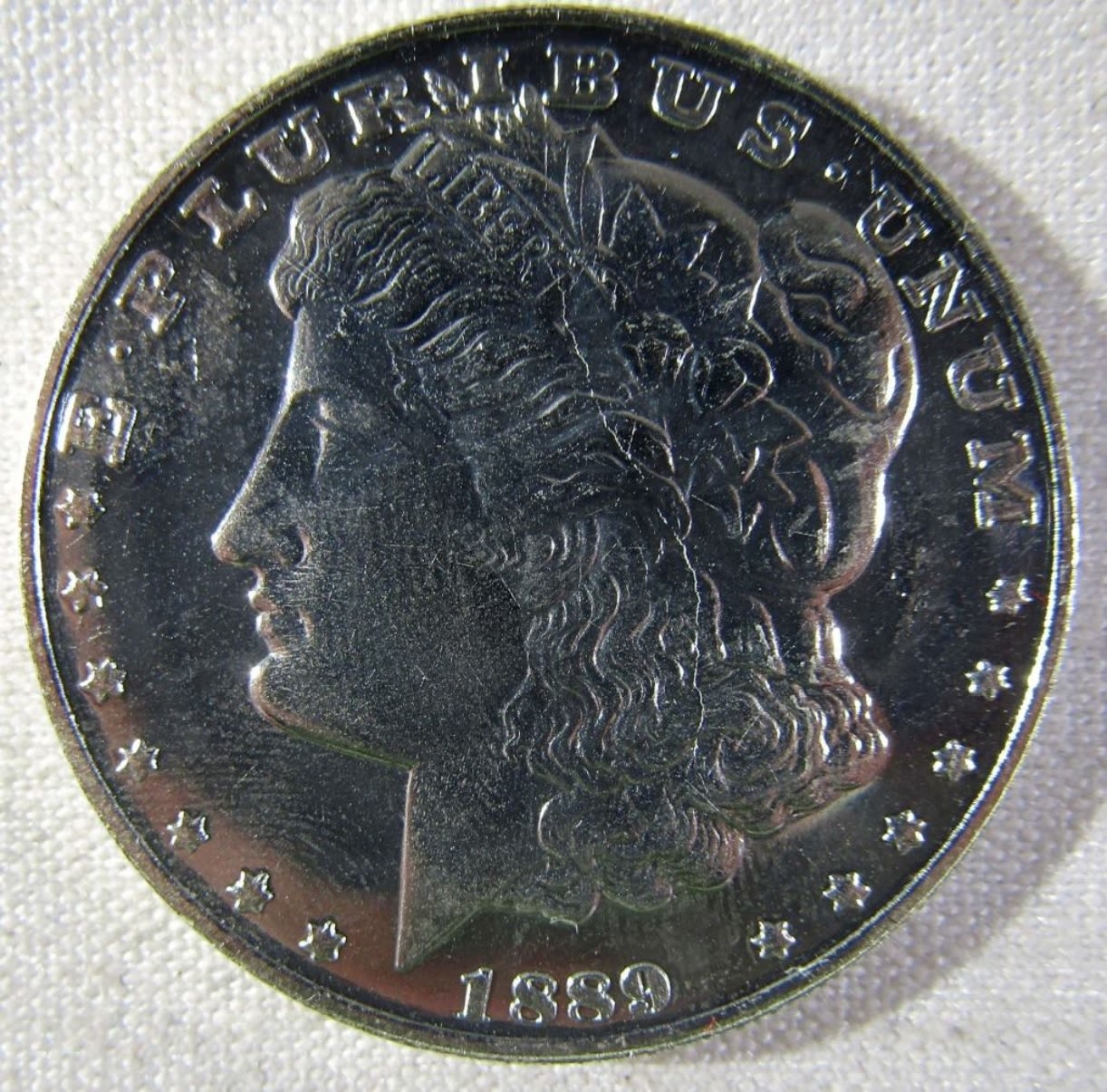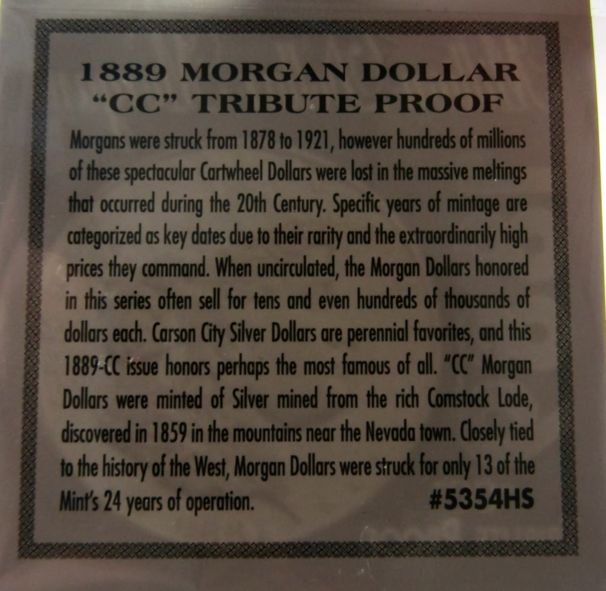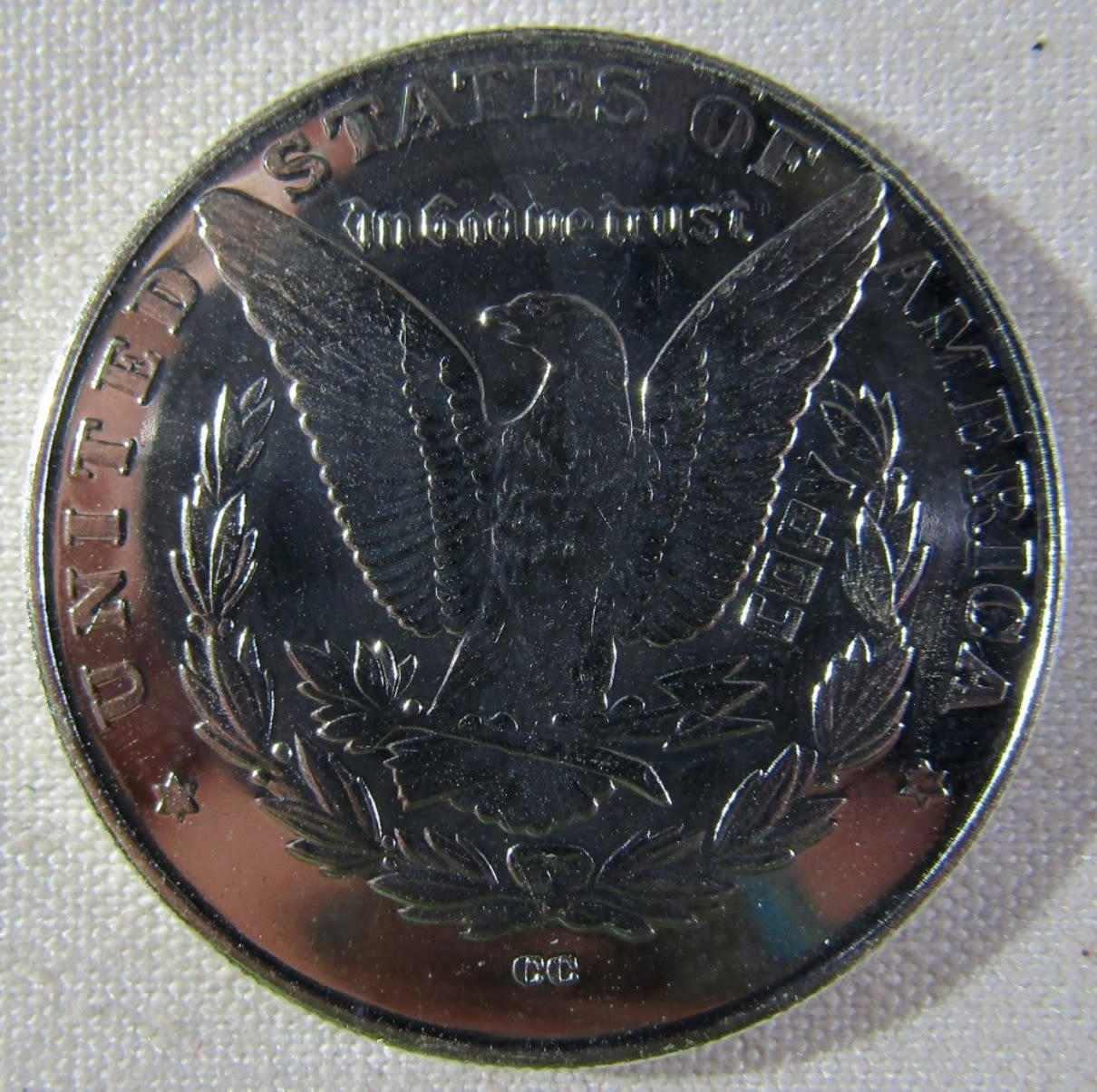 1889 MORGAN DOLLAR “CC” TRIBUTE PROOF. LAYERED IN .999 SILVER.