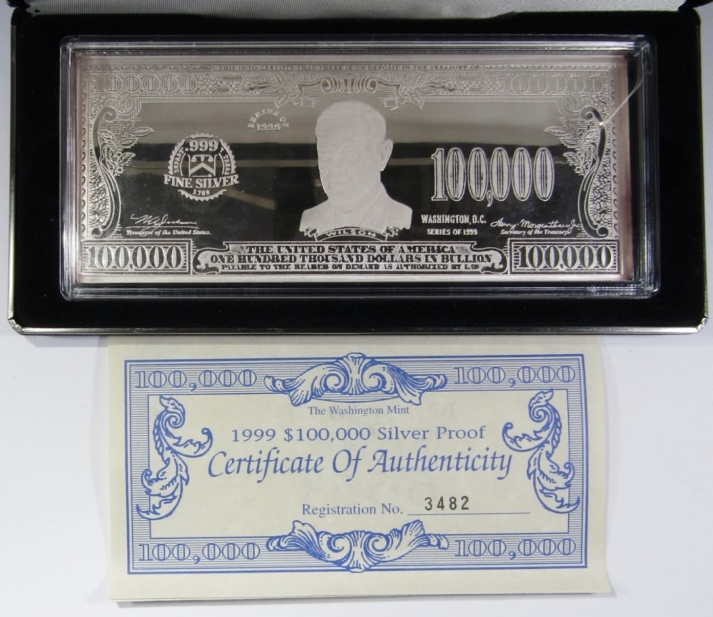 IN PLASTIC HOLDER AND VELVET DISPLAY CASE WITH COA. THE WASHINGTON MINT