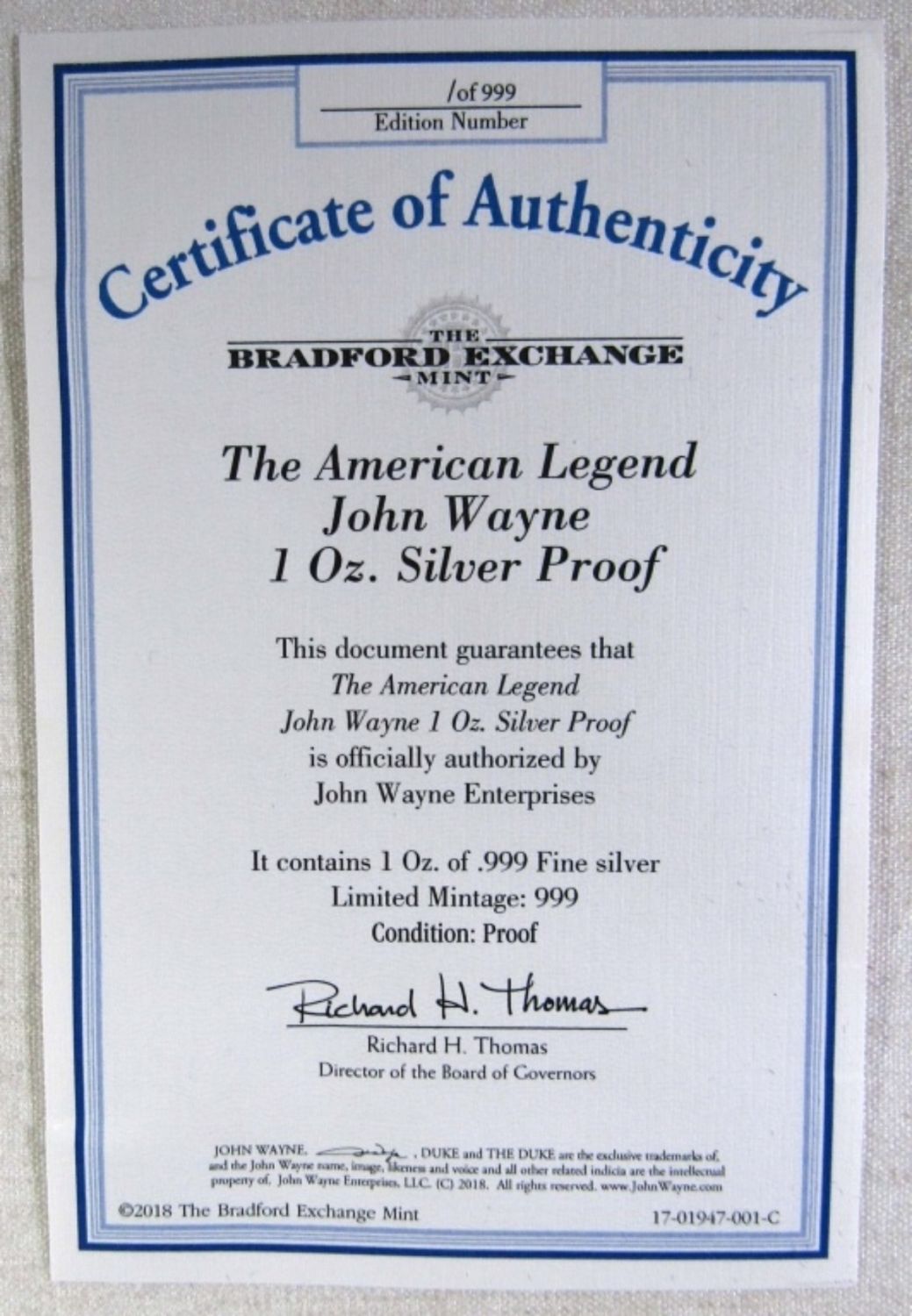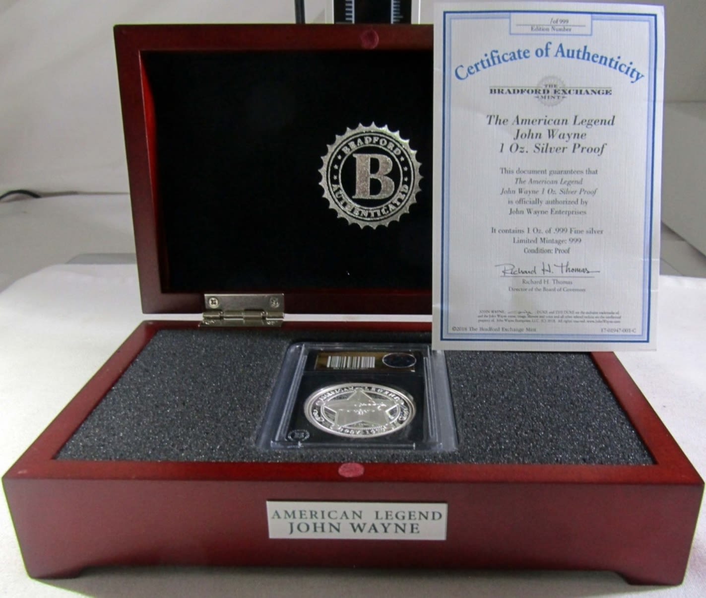 THE AMERICAN LEGEND COLORIZED PROOF ROUND. IN WOODEN DISPLAY BOX WITH COA