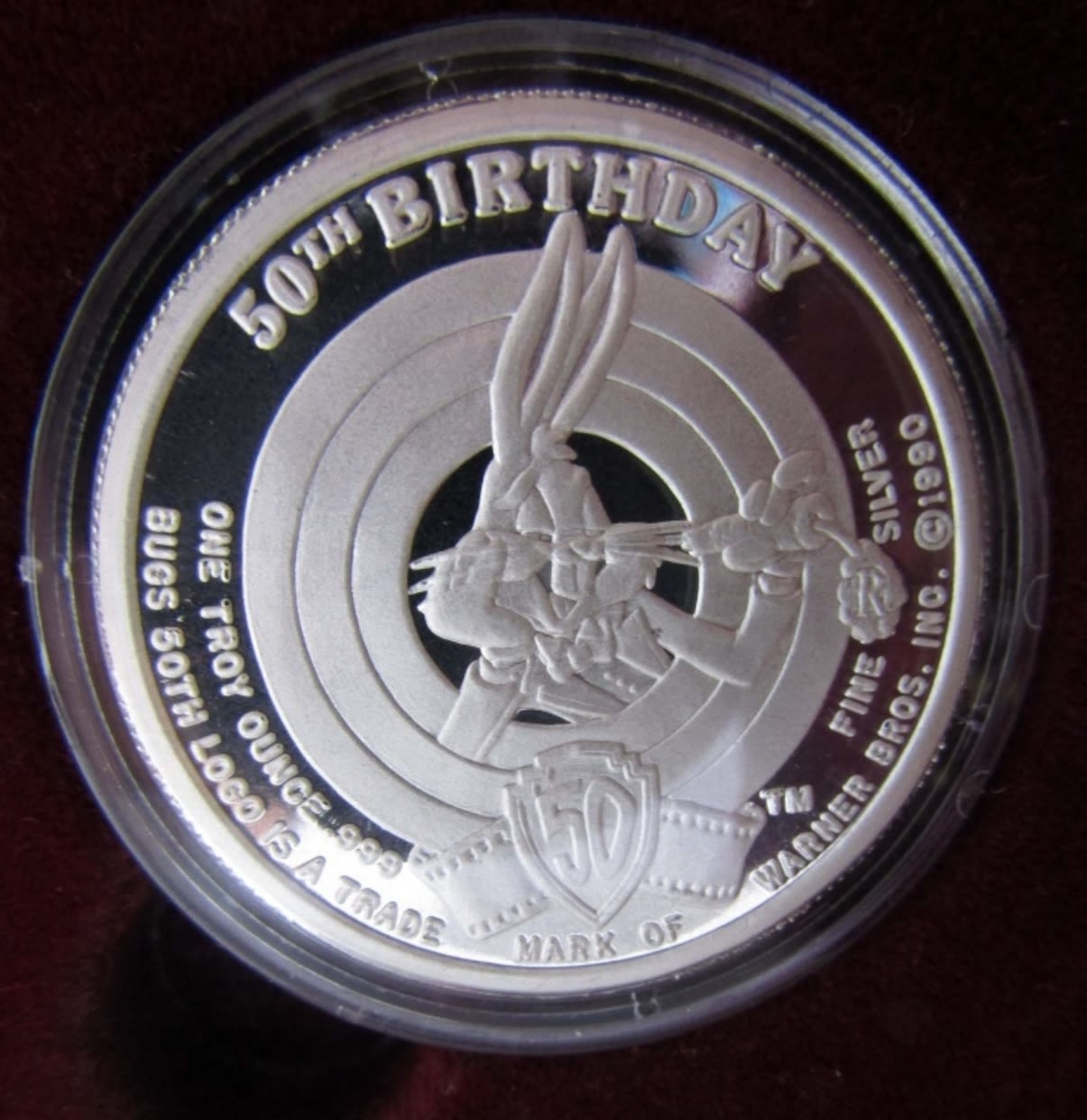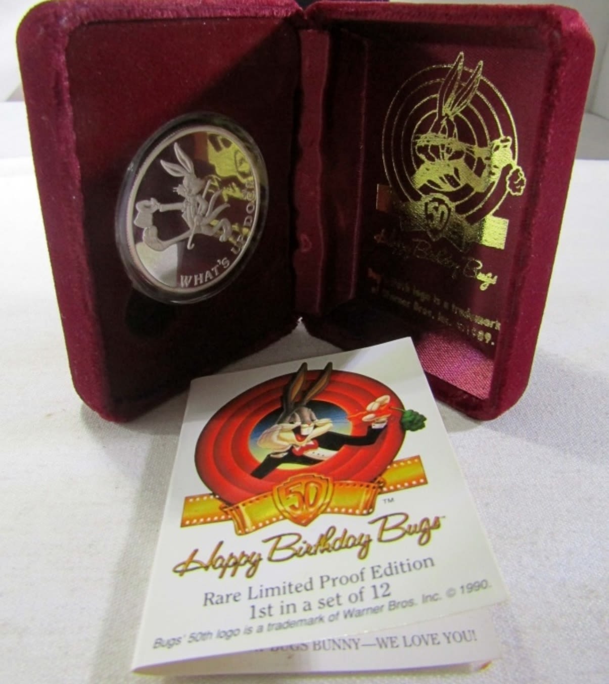 HAPPY BIRTHDAY BUGS, “WHAT’S UP DOC?” 50TH BIRTHDAY RARE LIMITED PROOF EDITION 1ST IN A SET OF 12, IN VELVET BOX WITH COA.