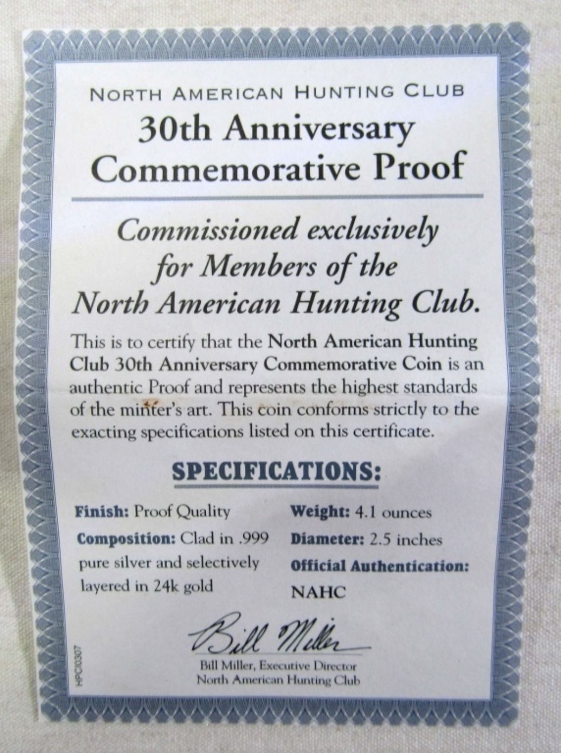 30TH ANNIVERSARY COMMEMORATIVE PROOF CLAD IN .999 SILVER & 24K GOLD. IN ORIGINAL PACKAGING WITH COA.