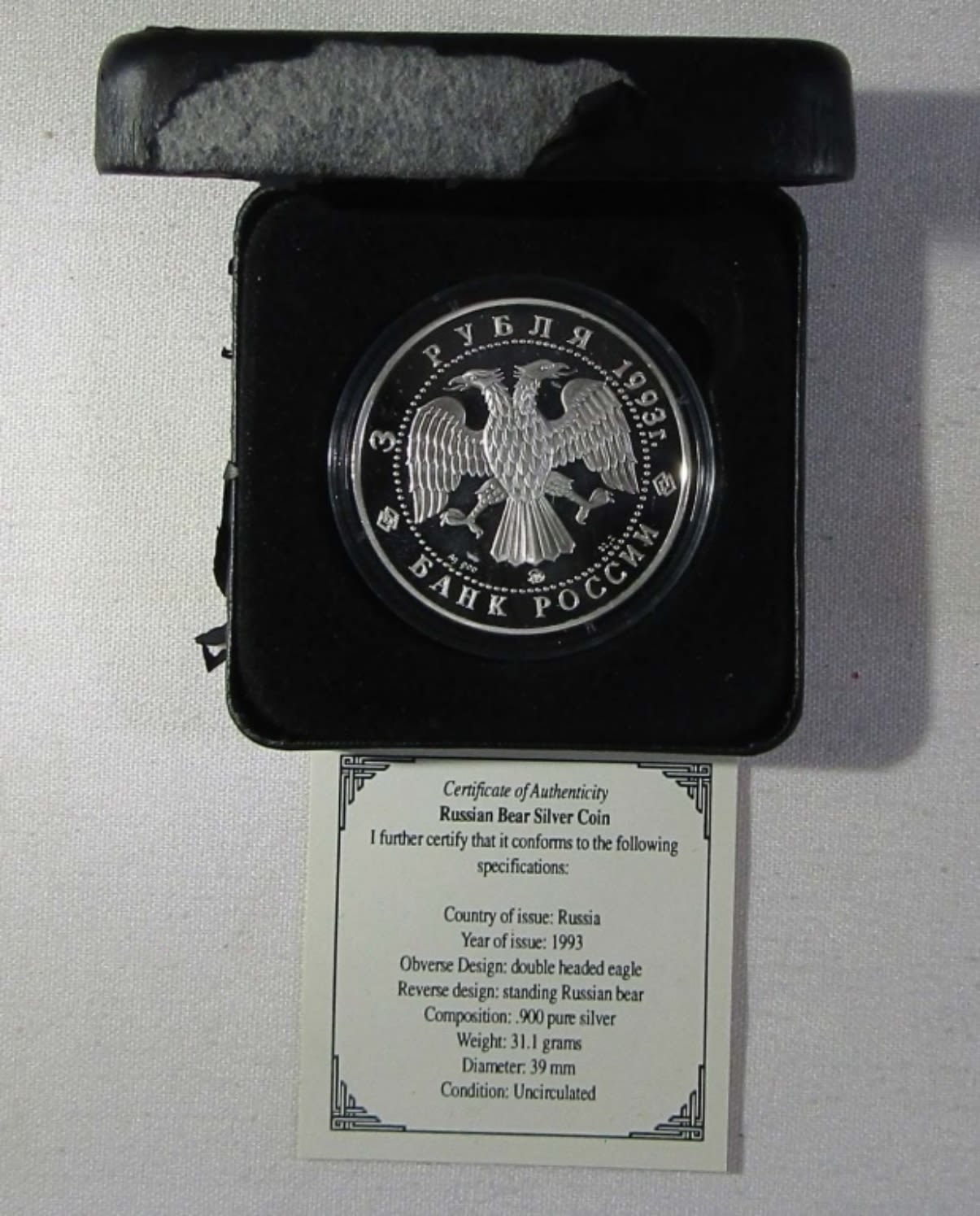 1oz .900 SILVER, IN LEATHERETTE CASE WITH COA.