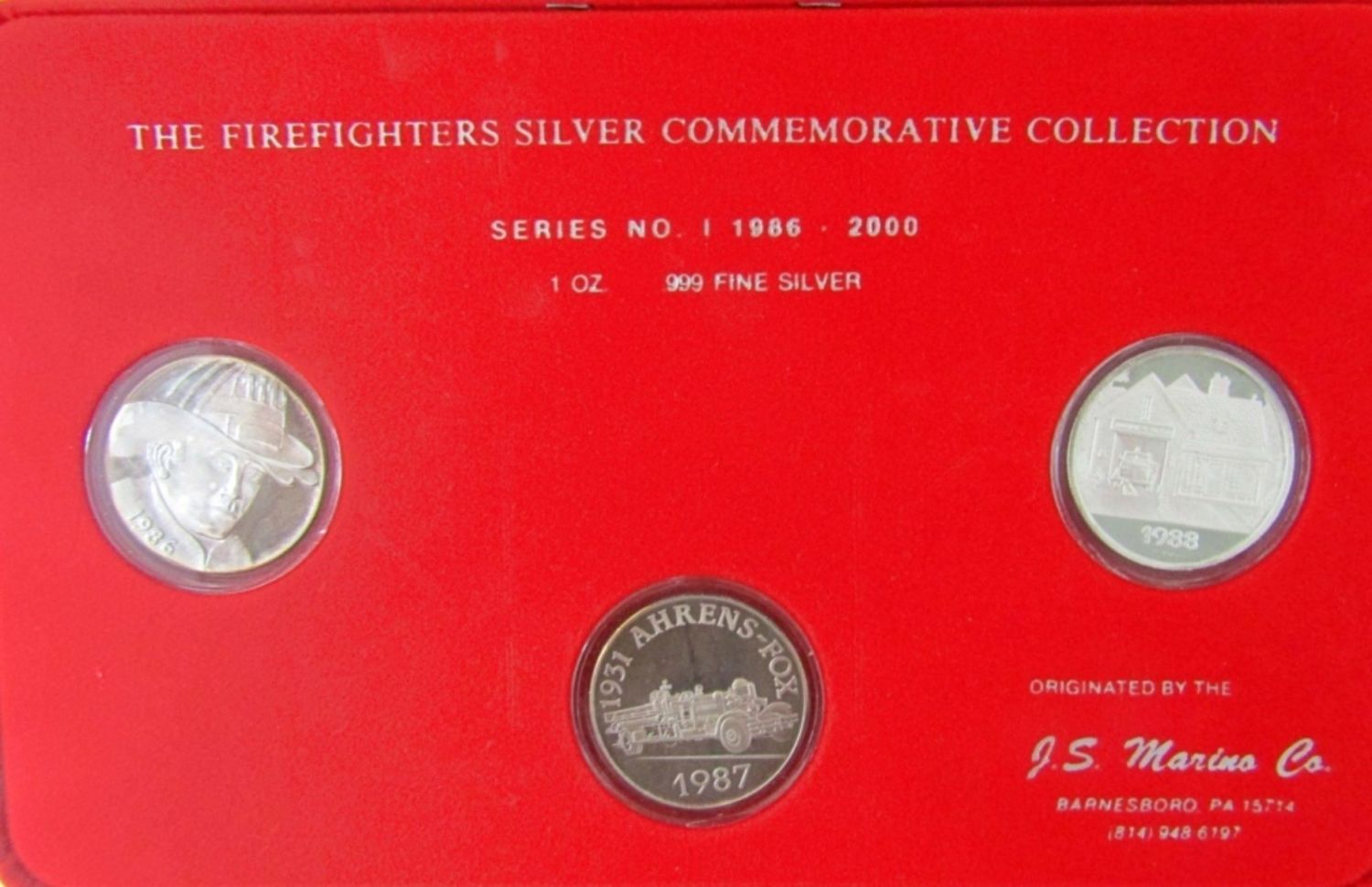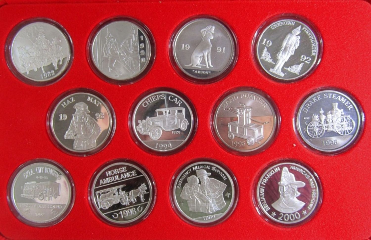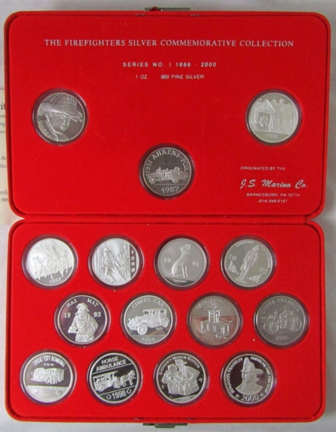 1986-2000 THE FIREFIGHTERS SILVER COMMEMORATIVE COLLECTION. IN DISPLAY CASE WITH COA.